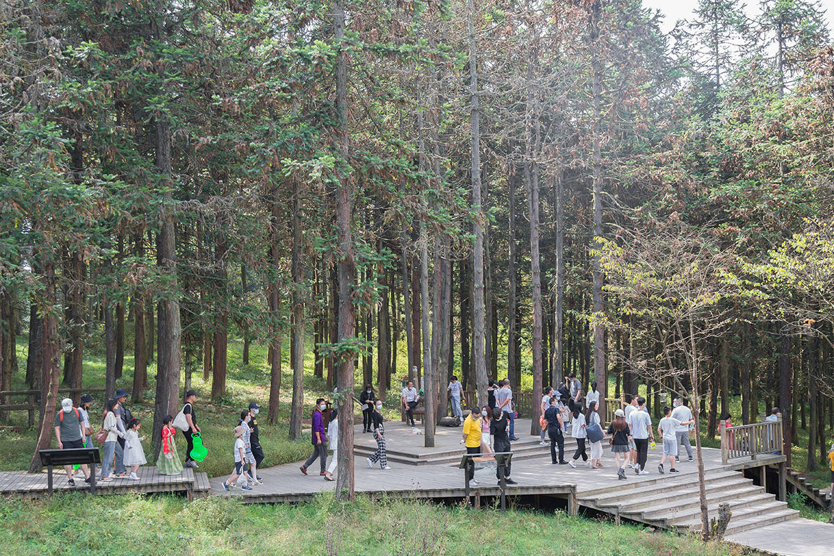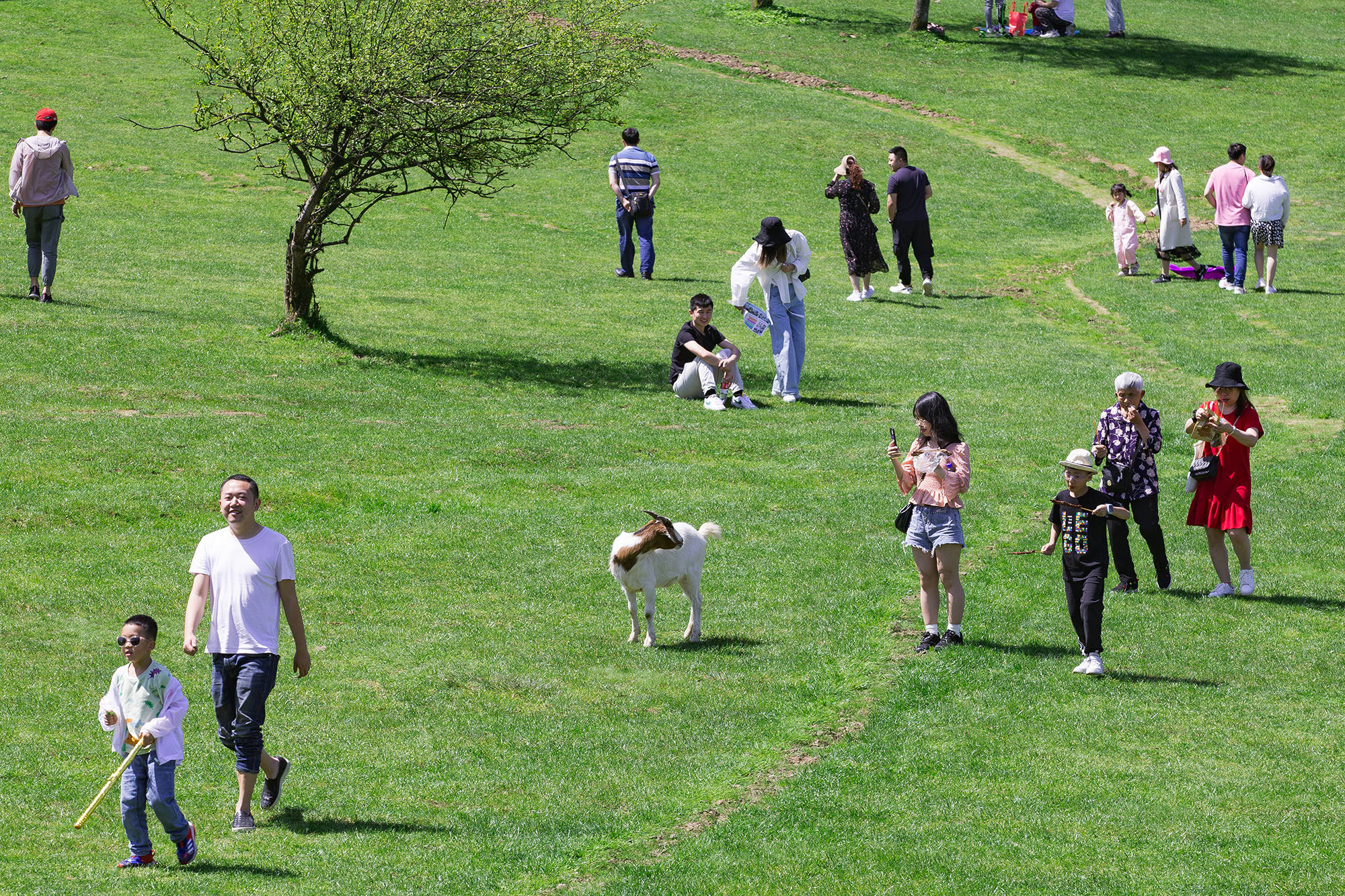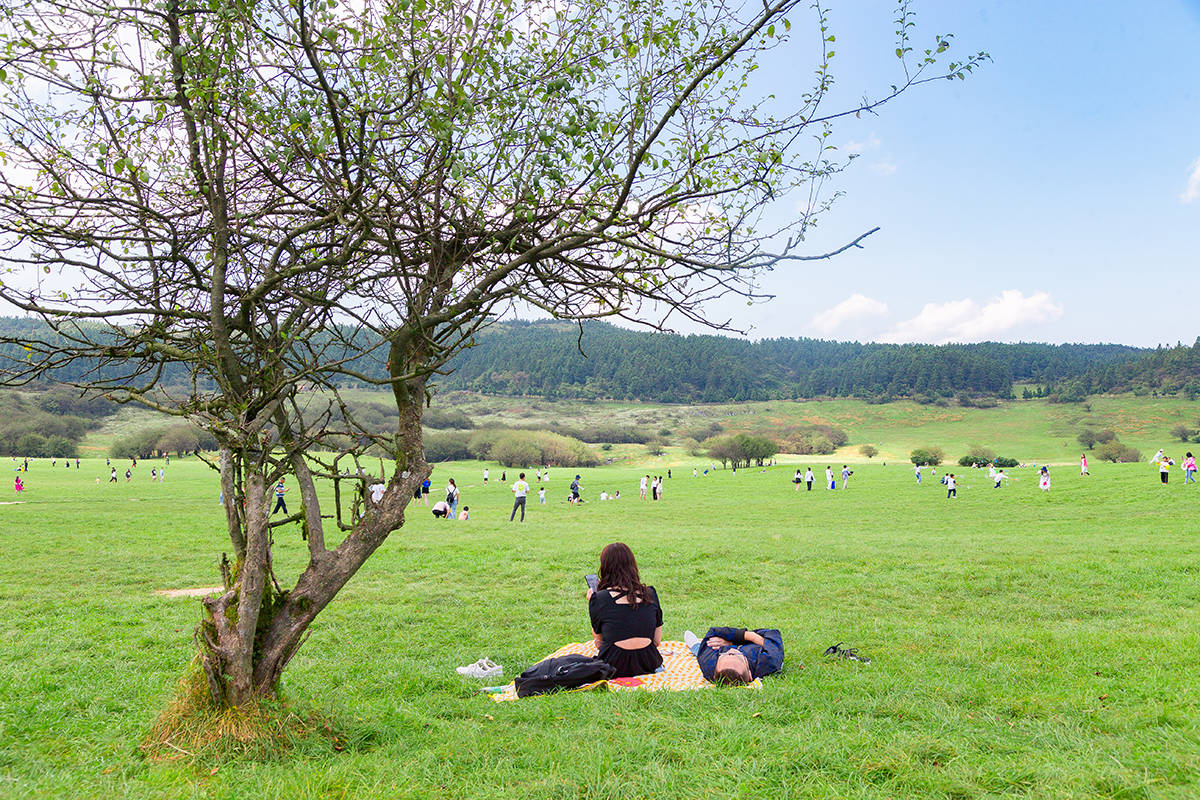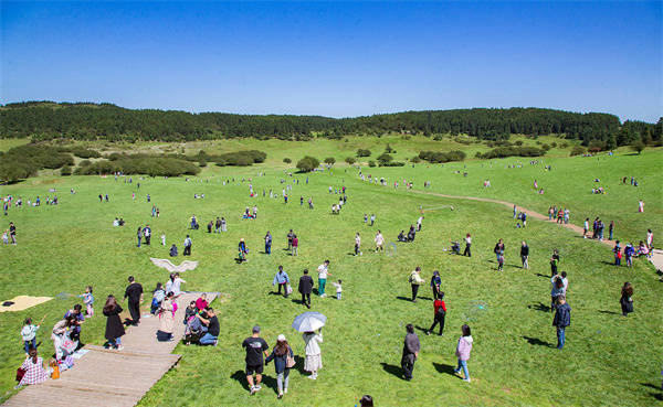 从天生三桥出来游客们意犹未尽,马不停蹄来到了仙女山。正值春盛的仙女山茫茫林海,苍翠欲滴。山林间的辽阔草场延绵天际,旖旎风光给人呼伦贝尔大草原的即视感。