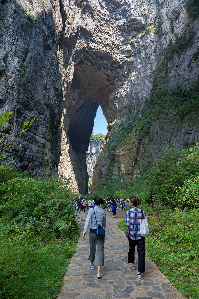 据悉,该旅行团人数多达400人,如此大的数量实为罕见。为尽快感受武隆旅游的魅力,旅行团不顾旅途奔波,抵达武隆的当天就来到了天生三桥景区,在景区工作人员的统筹安排下,浩浩荡荡的大团有序排队进入景区。