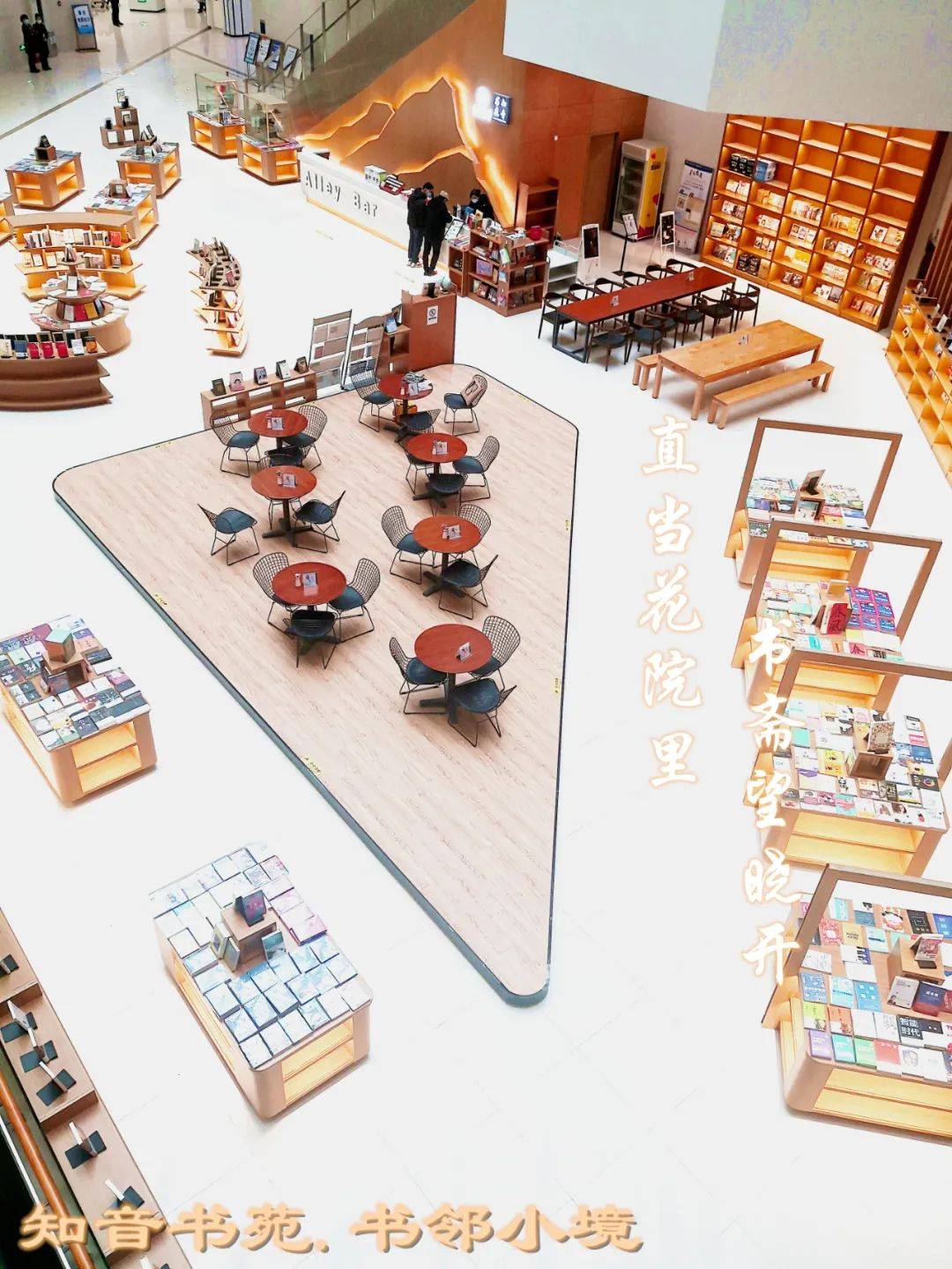 喜欢明亮,可以在书店中庭端上一杯咖啡,任光影横斜,让“虚室生白,吉祥止止”满布你的心绪;喜欢僻静,也可以在半空廊桥偏居一隅,夏天雨声,冬天风雪声,声声入耳,勾动心灵与自然的偶然碰撞与遇合。