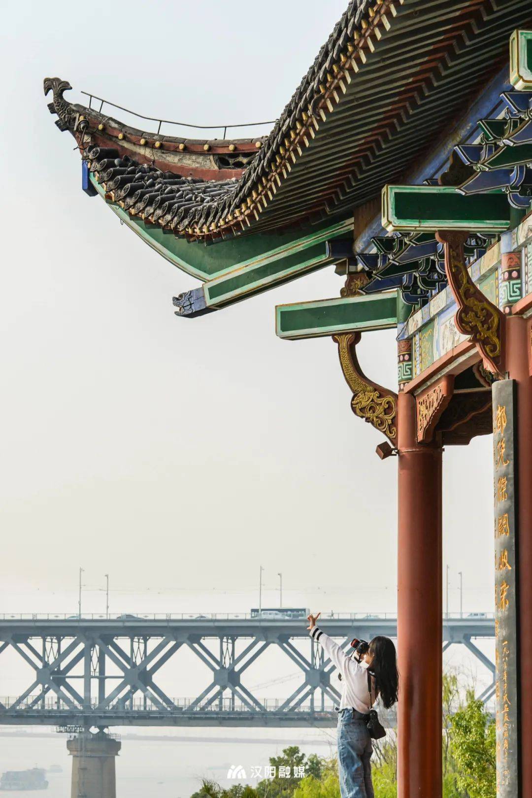 作为武汉唯一一座临江而立的古建筑,红墙朱柱,重檐歇山顶,门窗栏杆朱漆彩绘,它就是这样带着诗意与浪漫,走进每一个武汉人的心中。