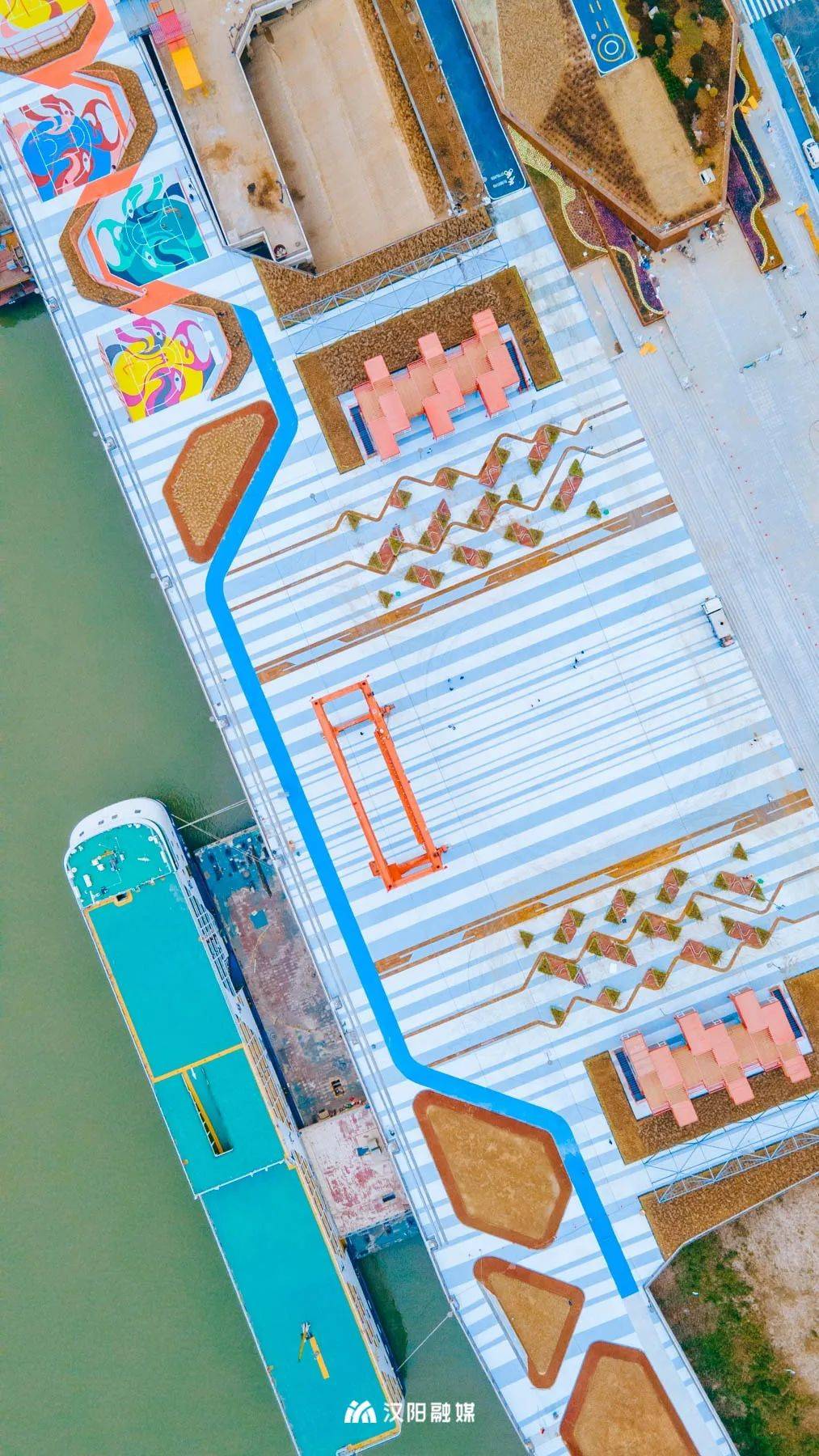 沿着江边一路逛到杨泗港都市T台,曾经机器轰鸣的工业码头,华丽转身成充满活力的“水岸秀场”。