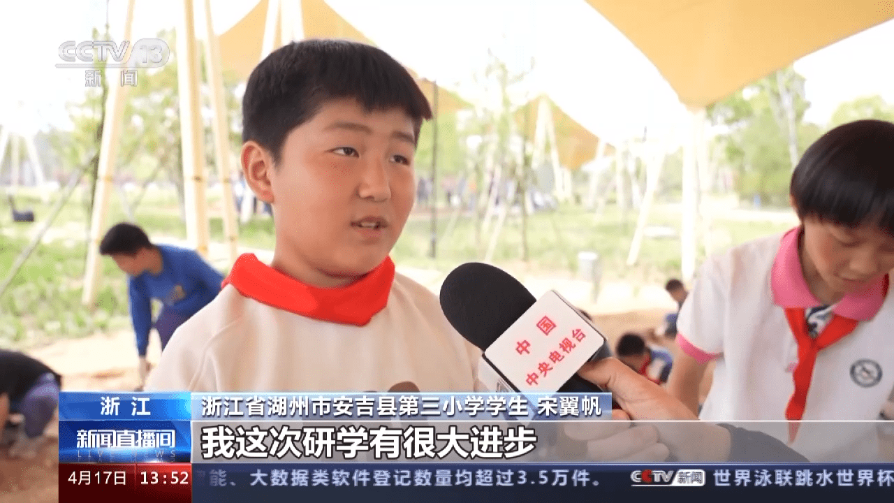 浙江省湖州市安吉县第三小学学生 宋翼帆:我想对我的妈妈说,我这次研学有很大的进步,学到很多知识,我想带着他们一起来体验。