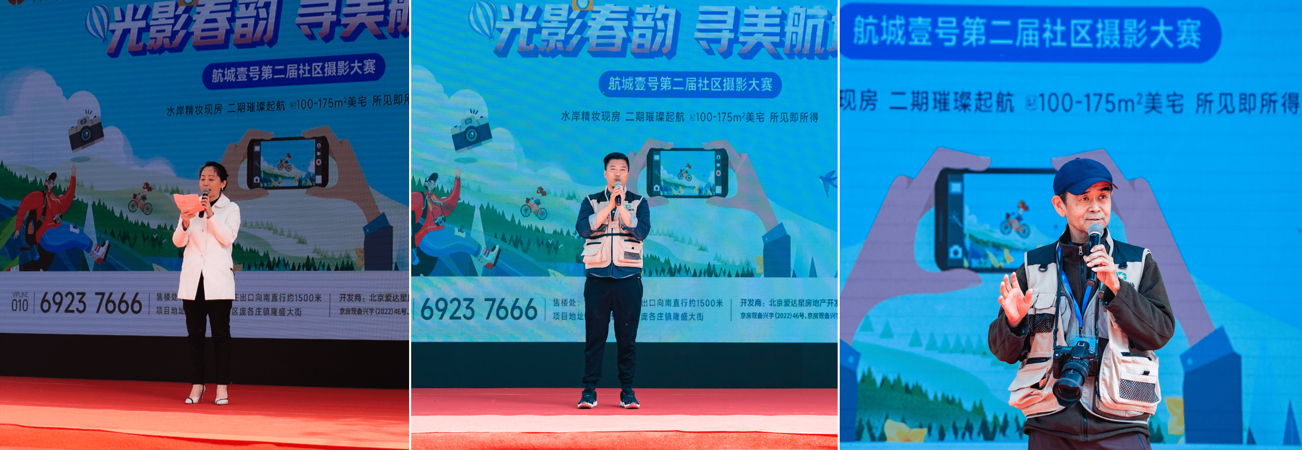 大赛开幕仪式上,航城壹号营销总监邵辉对所有活动报名参与者表示欢迎,强调航城壹号现房实景的优美居住环境,低密度、高绿化的社区为居住带来舒适惬意的美好生活。中国摄影家协会会员、北京摄影家协会理事、大兴区摄影家协会主席王巍,对大赛的举办致以美好的祝福,中国摄影家协会会员、北京市东城区、西城区摄影家协会副主席、纪实摄影家曲扬,也现场为所有摄影爱好者分享了摄影创作的实用知识和技巧,让所有人收获颇丰。