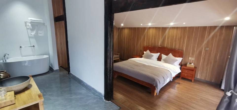 “民宿木质结构的房屋与落地窗自然融合,当你拉开窗帘满目可以感受到最美的舞阳河自然景观与乡村人文的深度融合,享受野趣自然的同时感受乡野归家的度假生活。”甘溪乡组织委员潘永花表示道。