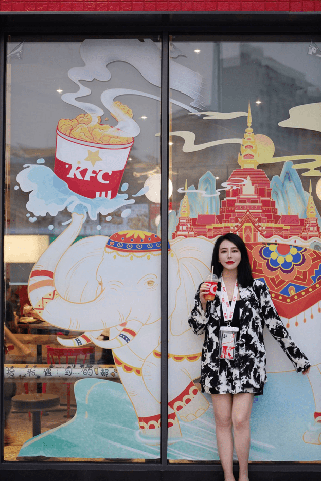 4月10日,肯德基在西双版纳泼水广场,以及告庄西双景等两大当地地标景点同时发布两家泼水节主题餐厅,充满着傣族风情的节日限定装饰惊喜亮相。可爱俏皮的大象、精致秀美的傣楼、盛装的傣族男女敲着象脚鼓、泼洒代表祝福的水花——栩栩如生的主题画面装点餐厅各个角落,充满民族风情的肯德基成为西双版纳新晋的“颜值担当”打卡点。