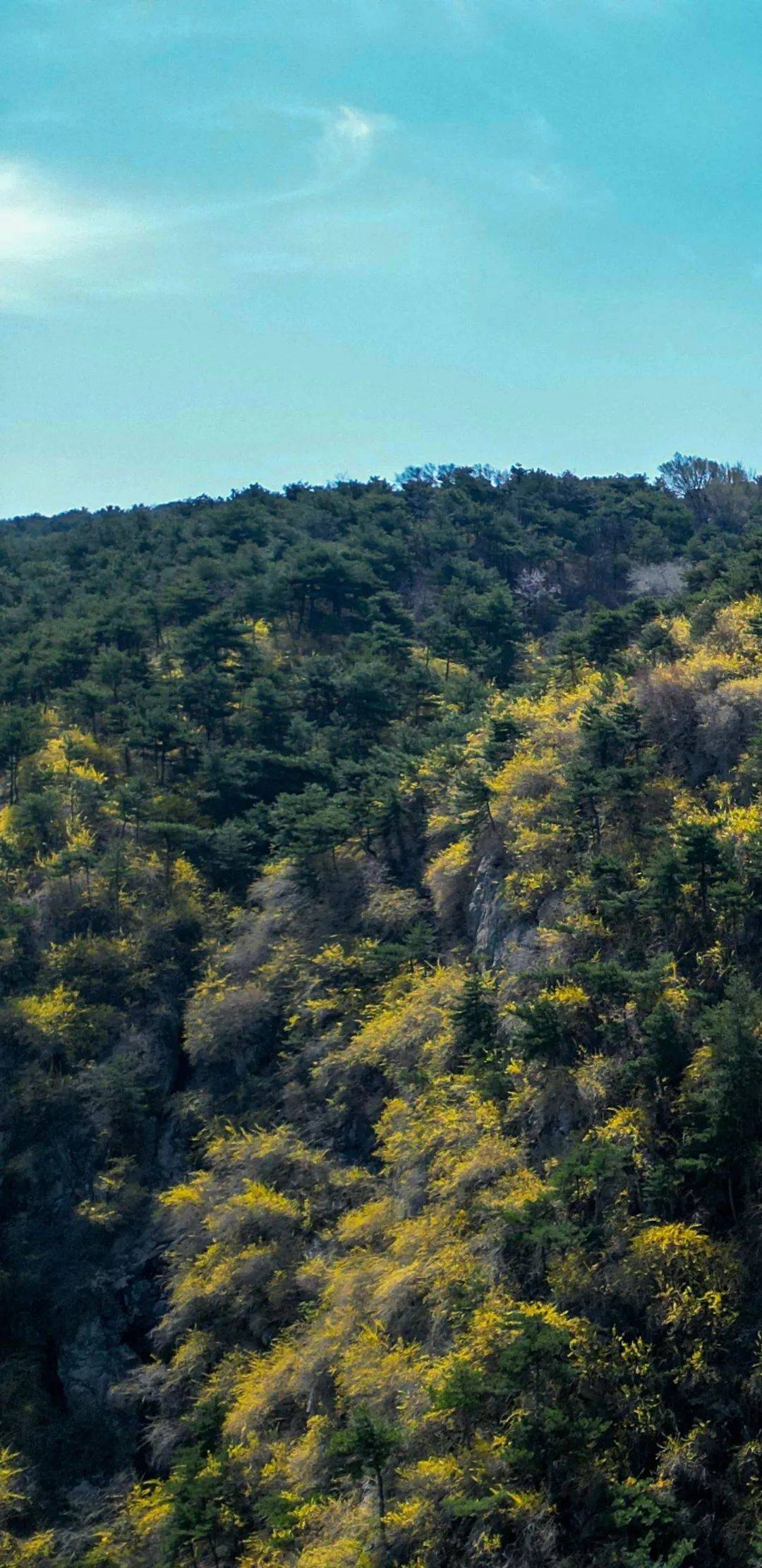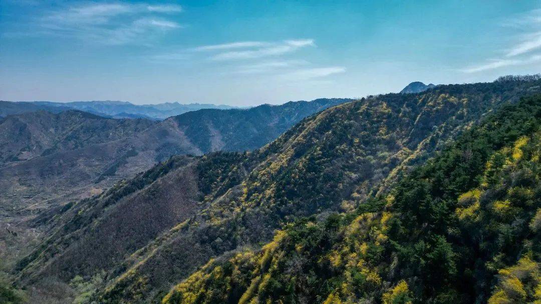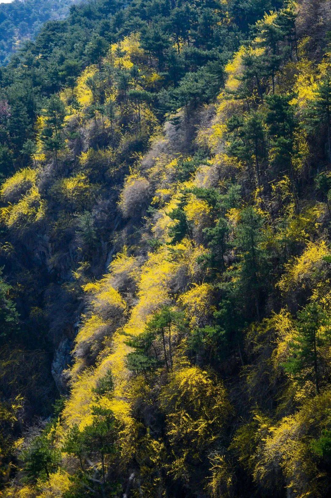 漫步在春光里,俯仰山林之间,点点连翘争艳,四面山野环香,一片澄澄的黄色。