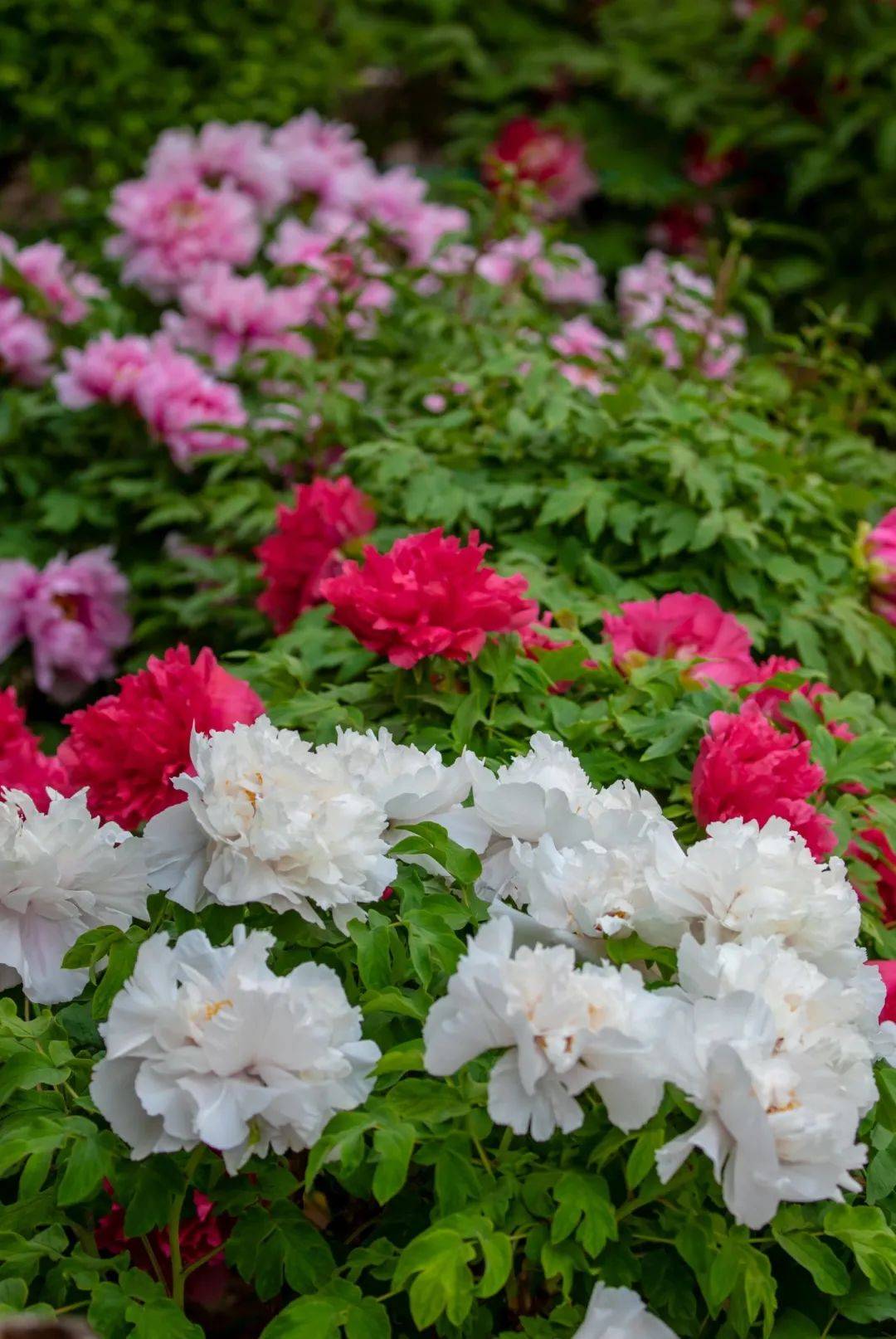 走进牡丹盛放区,阵阵芳香扑面而来,清而不妖。各色牡丹在春风中尽显绰约风姿,大气磅礴地招展着春风,绽放出端庄却又迷人的笑靥。