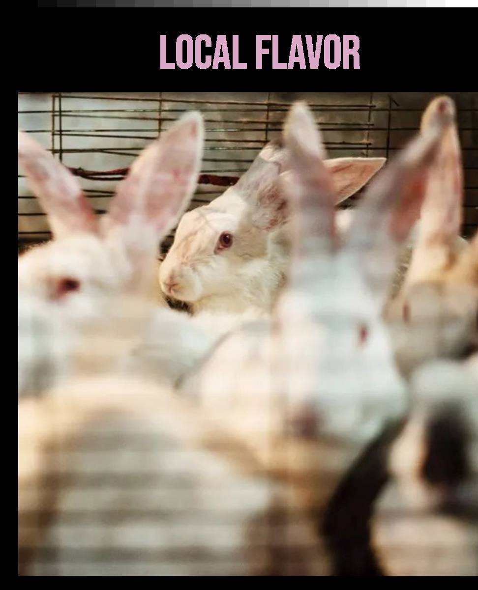 自贡的另一道名菜鲜锅兔,据说从选定活兔到做好上桌,时长不能超过10分钟。无论是从菜场街头拎回了一袋血肉,还是一次次在餐馆中目睹兔兔生命的加速旅程,这些场景都不对一个人的三观进行深度塑造,我是不信的。