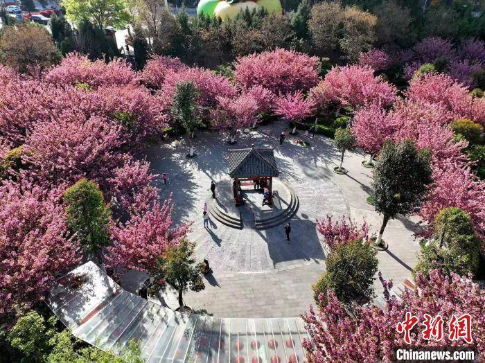 从高空俯瞰樱花海,美景如画。 何铉 摄