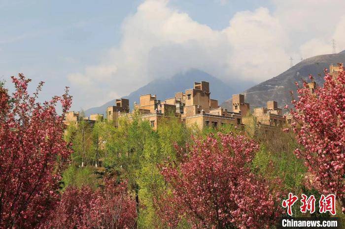樱花与碉楼交相辉映,成为一道亮丽的风景。 何铉 摄