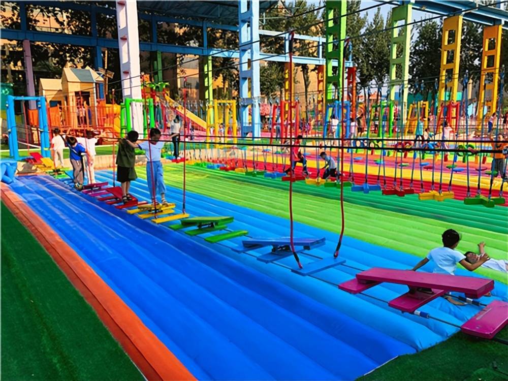 丛林穿越项目一般是根据实地情况来规划设计,设计的关卡种类难度各不相同,不仅可以让游玩者们体验一下从没接触过的事物,还可以激发孩子们的想象力和学习的兴趣,锻炼孩子们的团队协作能力和运动能力,对孩子们的成长特别有好处。这几点是现在的家长们带孩子户外活动比较会关注的方面,同时也是给乐园带来人气的一个好项目。可以很好地满足游玩者们的视觉体验,贴近享受与自然亲近的美妙之旅,同时还赋予了游玩者们勇于挑战自我的自信心。