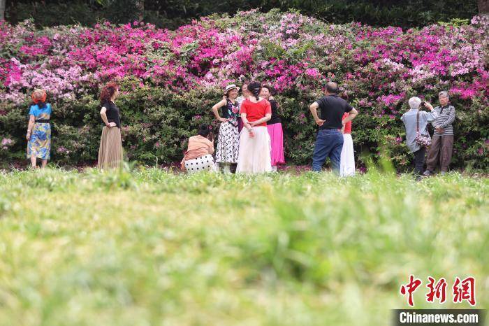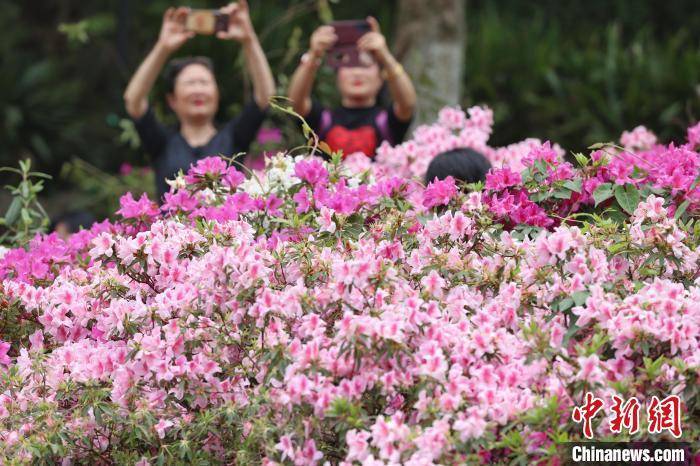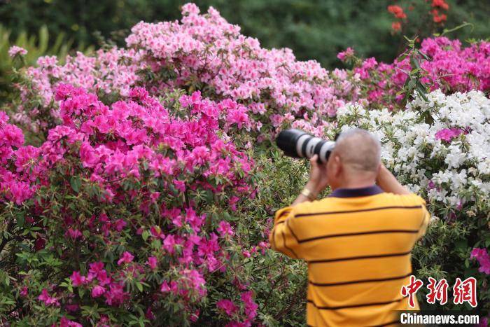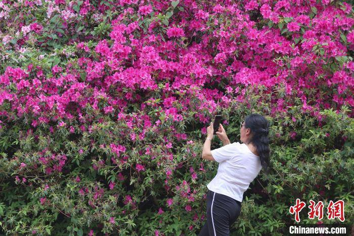 4月17日,绽放的杜鹃花吸引市民拍摄。 瞿宏伦 摄