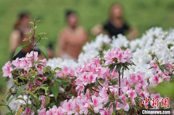 近日,位于贵州省贵阳市南明区的贵阳药用植物园内杜鹃花绽放,吸引市民前来观赏、拍照。