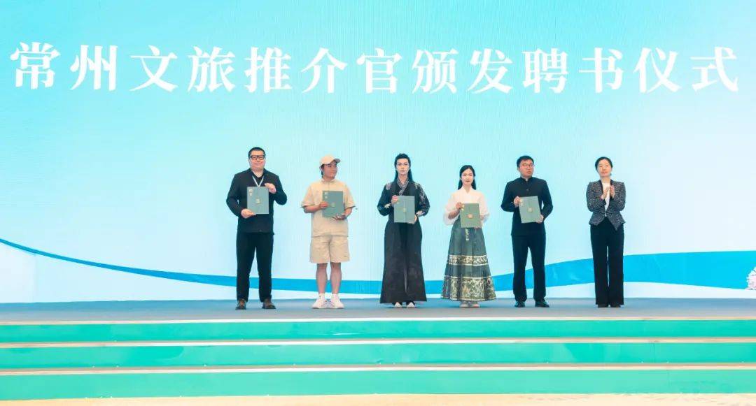 大会聘请高叶、白鹿两位常州籍演员担任常州市文旅大使。盛蕾为5位网红流量达人颁发“常州文旅推介官”聘书。