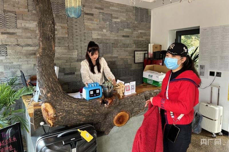 民宿工作人员正在为游客办理入住手续(央广网记者 周思杨 摄)