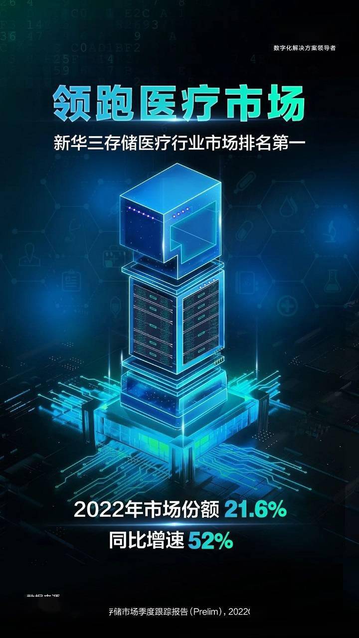 日前,IDC发布的《中国企业级外部存储市场季度跟踪报告(Prelim ),2022Q4》显示,2022年Q4,紫光股份旗下新华三集团在中国医疗行业以28%的存储市场份额排名第一,同比增速32%。2022全年,新华三存储以21.6%的市场份额在中国医疗行业稳居第一,同比增速高达52%。强劲的增长势头彰显了新华三在医疗行业数字化领域的强大技术实力与客户的高度认可。