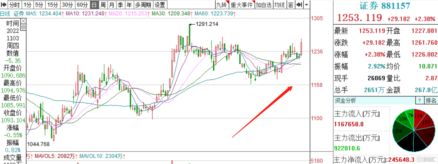 拉长时间维度来看,同花顺证券指数近期处于持续上涨的态势中。