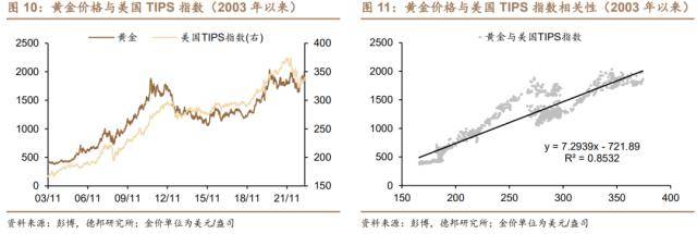 由此也可总结出不同时期美国10年TIPS对金价定价权的强弱: