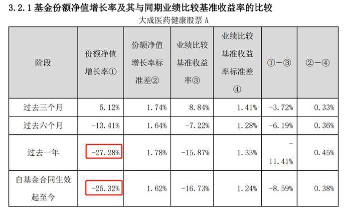 基金经理杨挺管理的大成医药健康股票A表现较差,2022年净值回撤超27.27%,跑输业绩基准11.41个百分点,同类排名558/719。该产品自基金合同生效起至2022年末累计净值下跌25.32%,跑输业绩基准8.59个百分点。