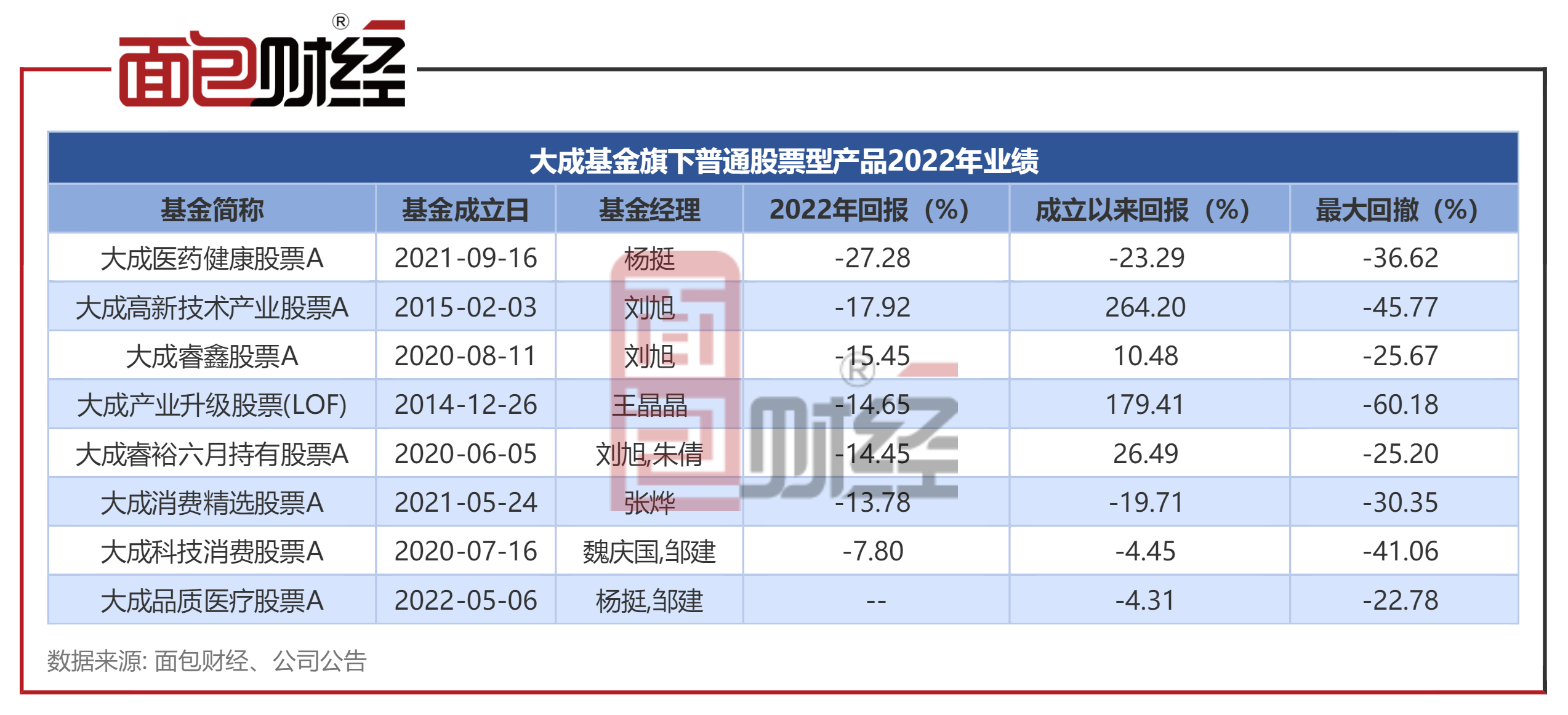 大成基金管理有限公司成立于1999年,总部位于深圳,是中国首批“老十家”基金公司之一。2022年期间,市场赚钱效应差,大成基金旗下普通股票型产品业绩大多出现下滑。