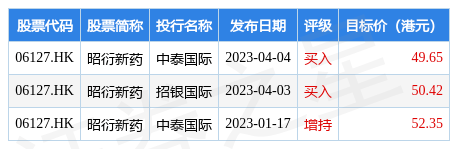 截至2023年4月17日收盘,昭衍新药(06127.HK)报收于35.15港元,下跌0.14%,换手率0.58%,成交量49.42万股,成交额1741.46万港元。投行对该股的评级以买入为主,近90天内共有2家投行给出买入评级,近90天的目标均价为50.81港元。中泰国际最新一份研报给予昭衍新药买入评级,目标价49.65港元。