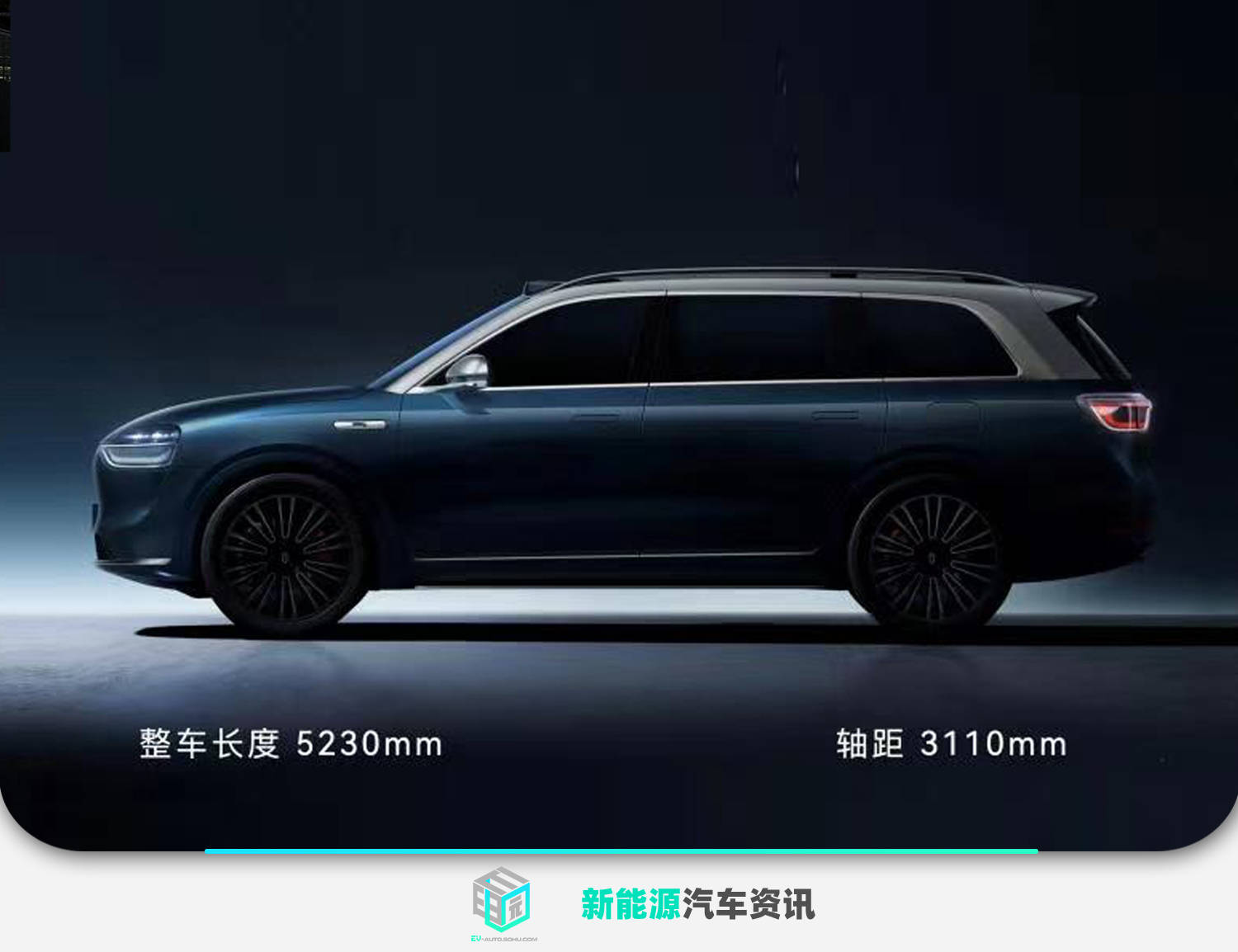 新车基于全新D级豪华SUV平台打造,车长5230mm,轴距3110mm,采用9000吨一体压铸工艺、超大一体压铸铝合金车身构件、全铝合金底盘、空气悬架、CDC悬架、最多100英寸 10屏互联技术、等技术,预计2023年第四季度上市。