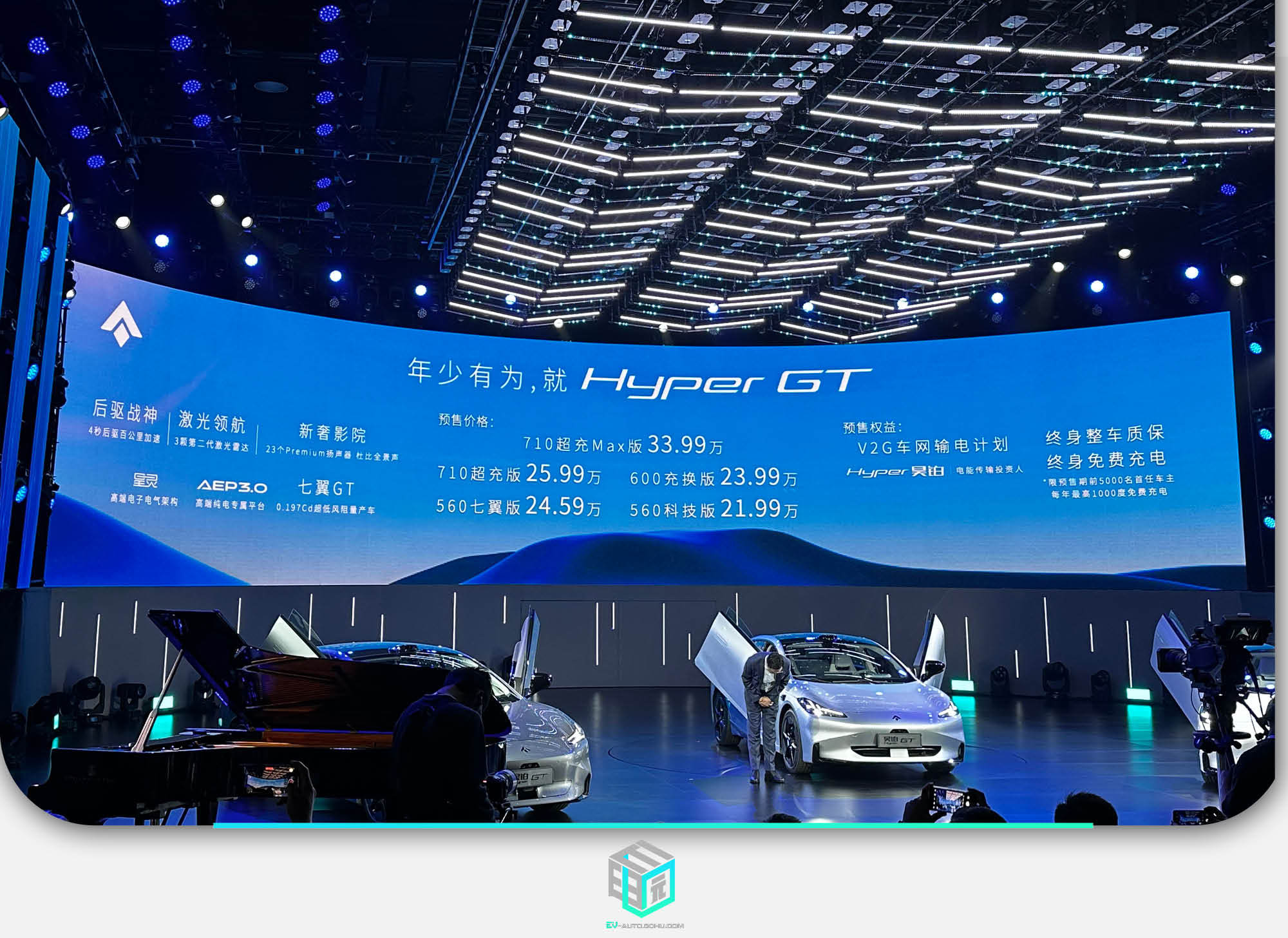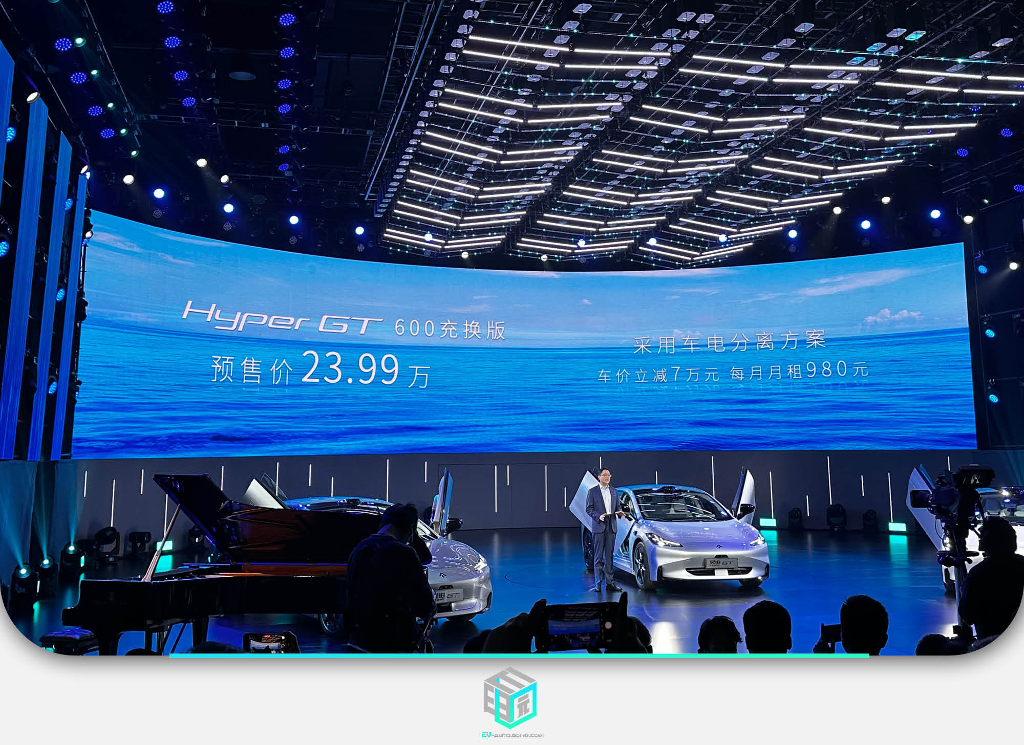 在2023上海车展开幕前夕,昊铂Hyper GT公布了预售价为21.99-33.9万元,推出600充换版,采用车电分离模式,车价可减7万元,每月电池月租980元。据悉,新车为广汽埃安旗下全新独立品牌昊铂的首款车型,新车将在4月18日开幕的上海国际车展上展出,并在6月底正式上市,年内实现交付。