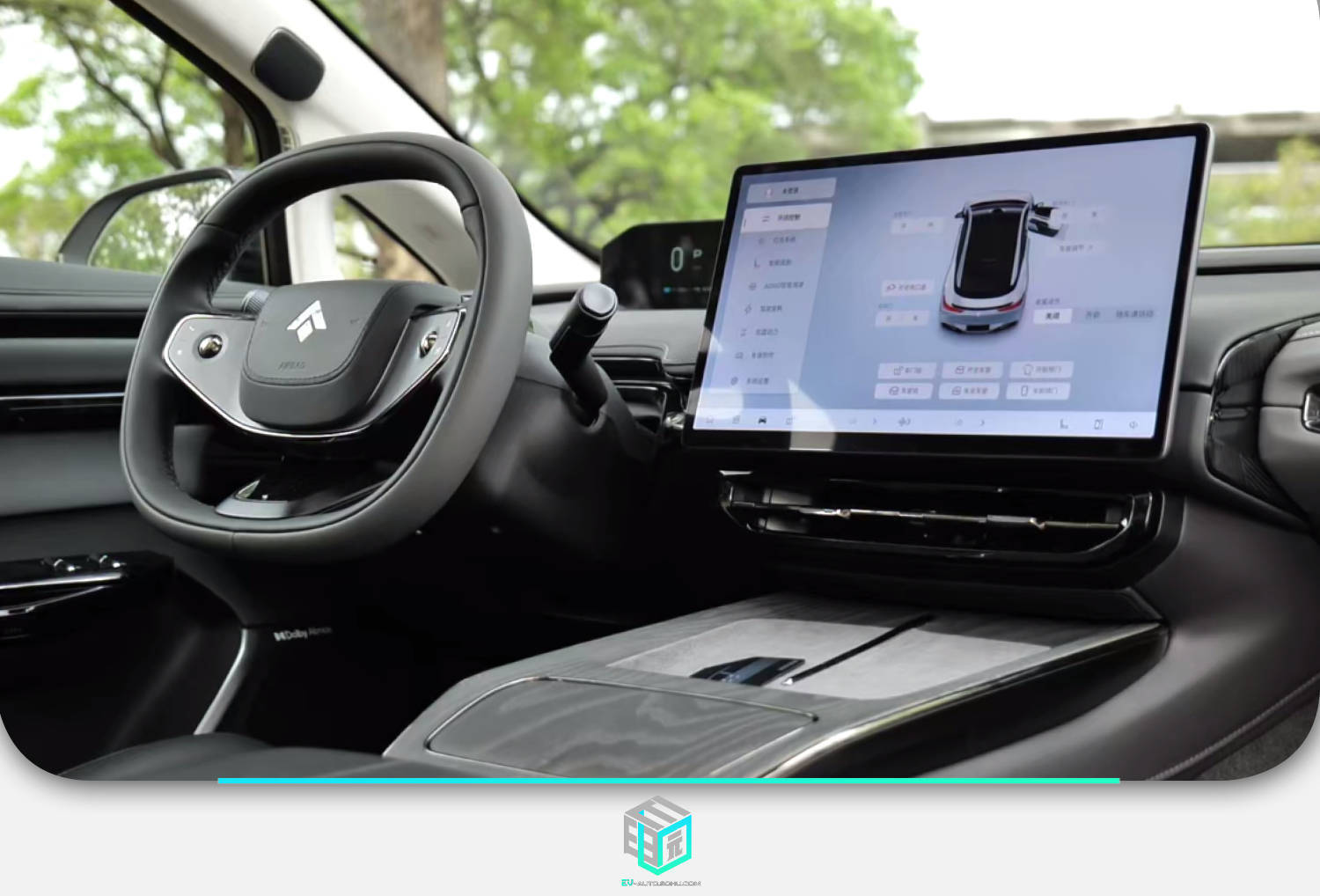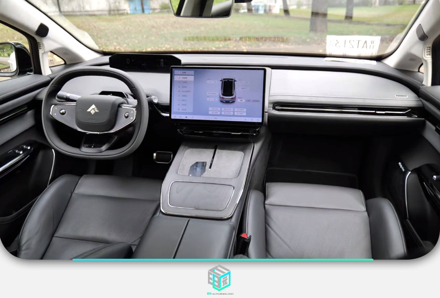 仪表盘采用悬浮式设计,安置于中控台之上,视觉观感更靠近机舱盖的位置,试驾车并未配备HUD抬头显示功能。中控屏幕为14.6英寸,2560×1440的屏幕分辨率(2.5K),采用8155车机芯片,内置系统为ADIGO 5.0。车机UI和逻辑都有提升,上手难度较低。智能语音支持可见即可说的功能,可控范围也比较大。