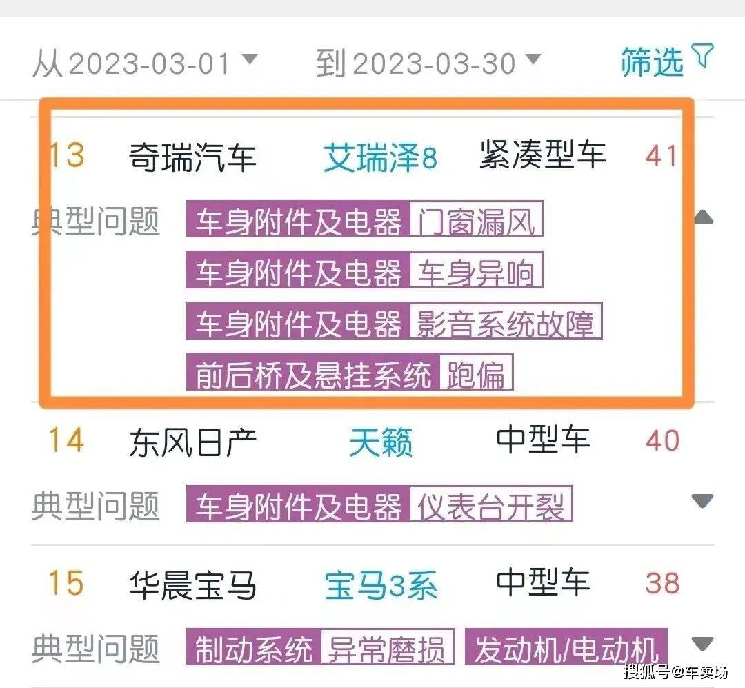 什么艾瑞泽8的A柱漏风问题,瑞虎8PLUS鲲鹏e+油耗高问题等等,最主要的是这些问题还没人解决!这也不难理解为什么奇瑞汽车在国内卖不动了!