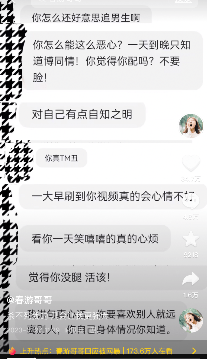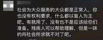 但即便如此,他的评论区里还是充斥着不少不友善的言论:“这个世界本来就不是给你们(残疾人)体验的”“残疾人就该被优胜劣汰”……