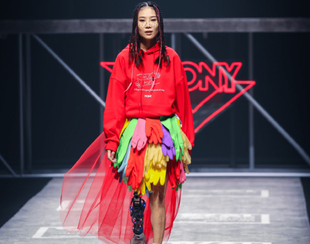 牛钰第二次出圈,是在2021年上海时装周。她迈着“钢腿”,第一次登上T台。一年后,上海时装周再次邀请了她,这一次她穿着自己设计的裙子,成为当晚唯一收获掌声的模特。