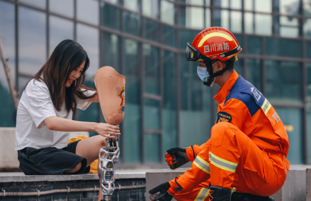 钢腿女孩和消防小哥哥热恋 全网嗑糖,封面新闻,2022-12-08