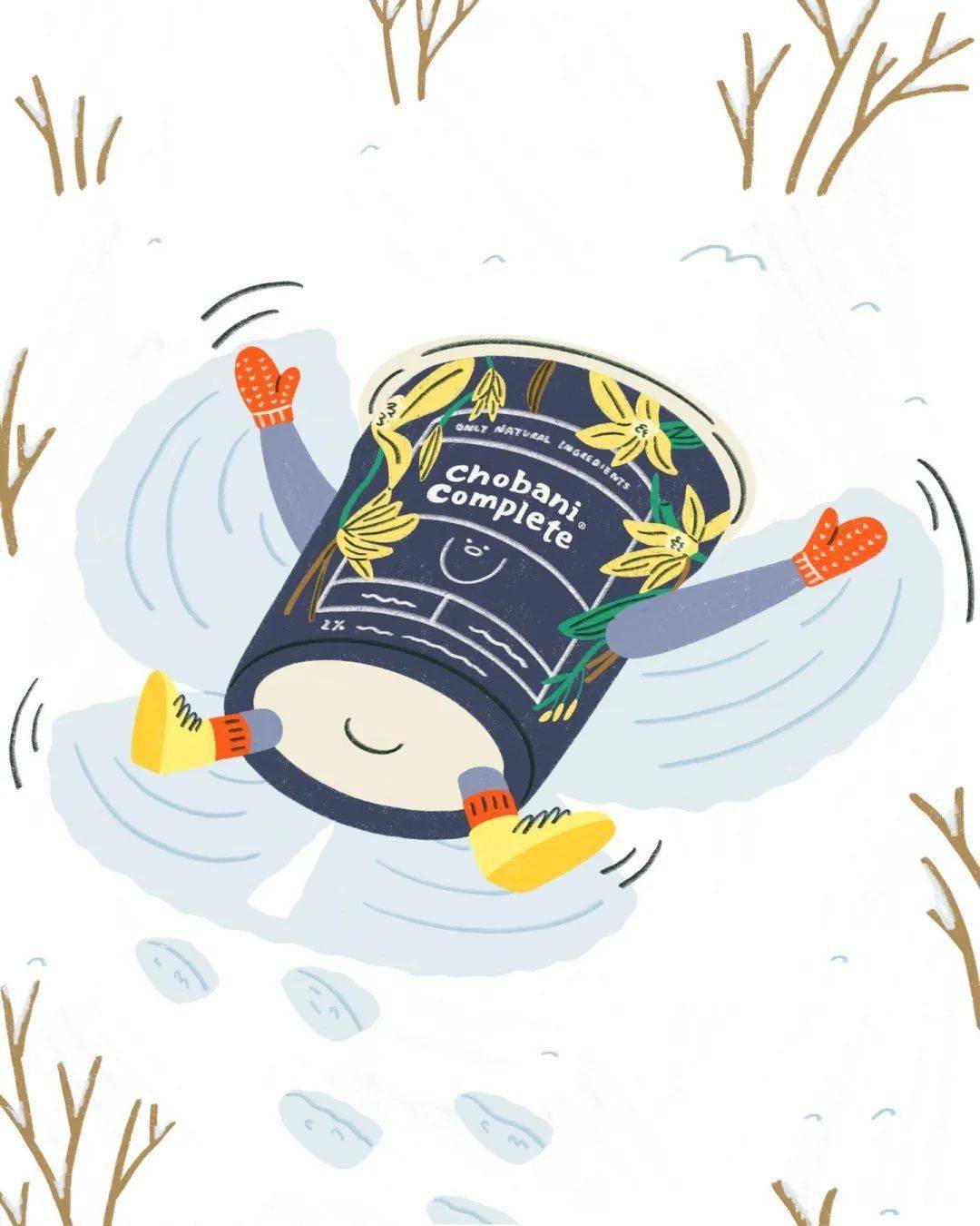 作为家喻户晓的老牌酸奶,Chobani在「酸奶盒」的设计上也是不甘落后。 Chobani与 艺术家Jessie Wong合作释出的酸奶插画给人一种满载温暖的氛围,藏在各个角落的酸奶就像是为生活增加仪式感的一束鲜花。