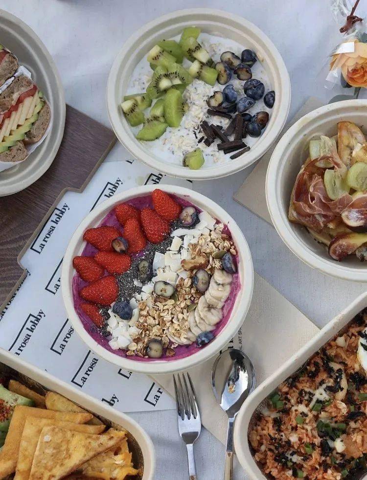 这种可供外带的「酸奶碗」尤其适合在晴天来一场说走就走的户外野餐,精致且色彩丰富的餐食就是唾手可得的出片神器。