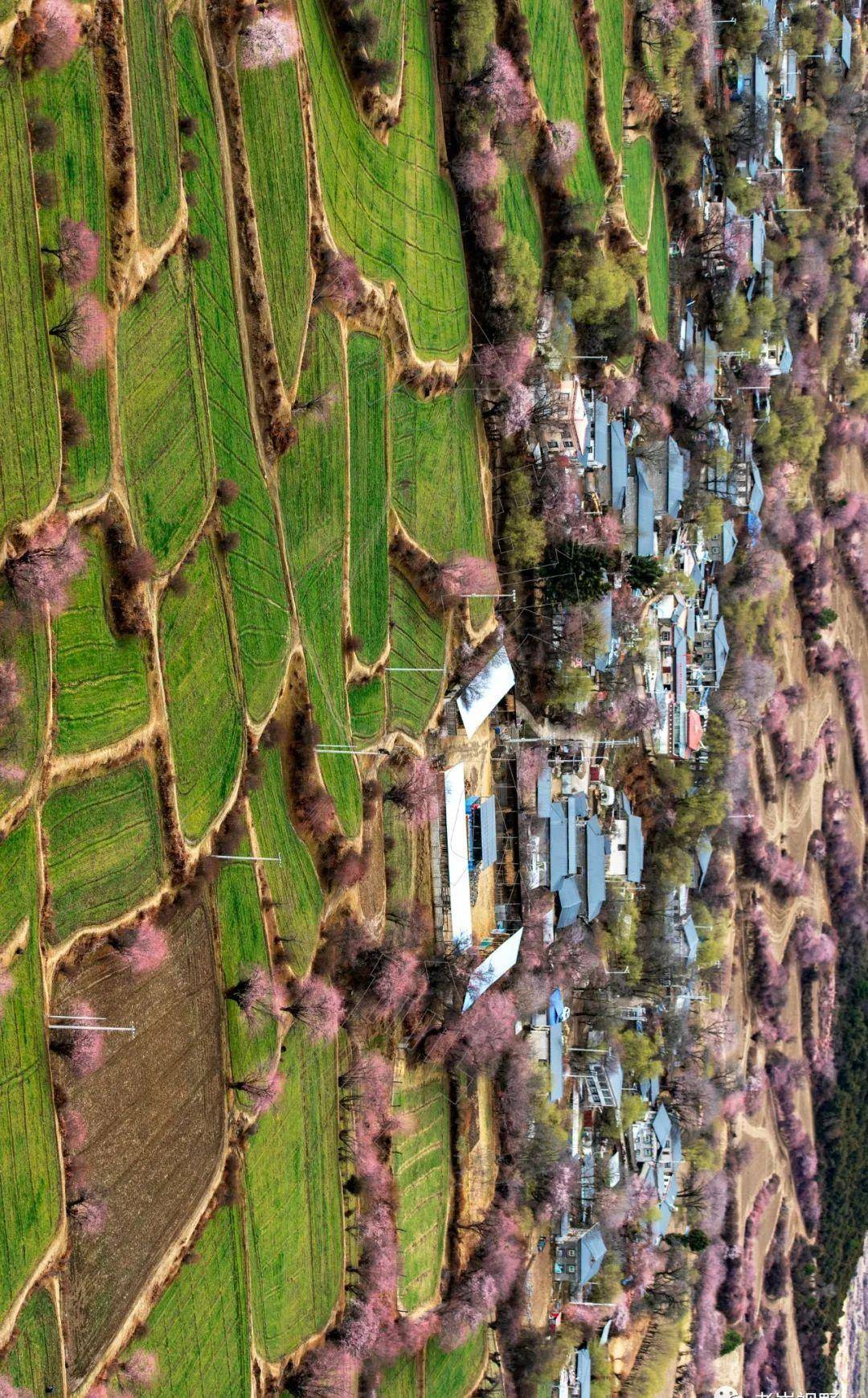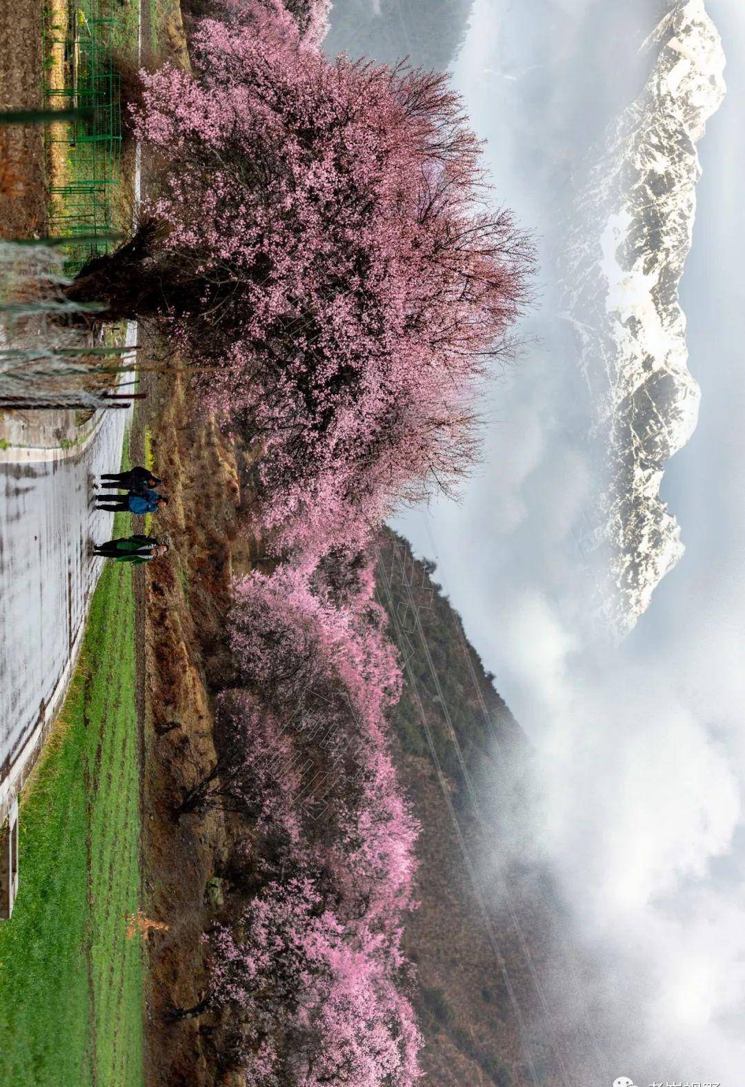 但是,每年三四月份的花开,却营造出了一种绝美的雪山桃花源景观。你想,在皑皑雪山的衬托下,漫山遍野疯长的野桃树,肆意狂野绽放的野桃花,绯云般散布在海拔2600米至3200米的高原河谷中。这是一幅何等醉人的画面啊!