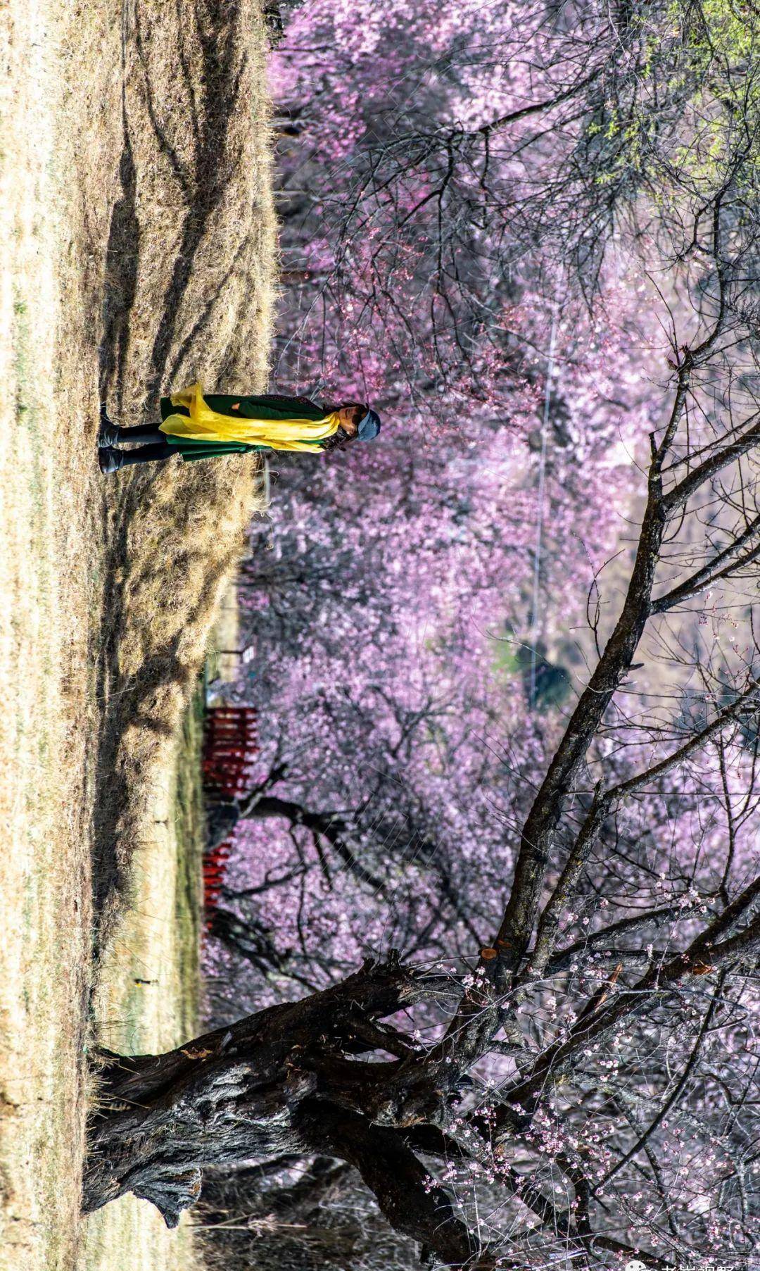(请横屏。游客在桃花观赏园中留影。摄影@邯郸老崔)