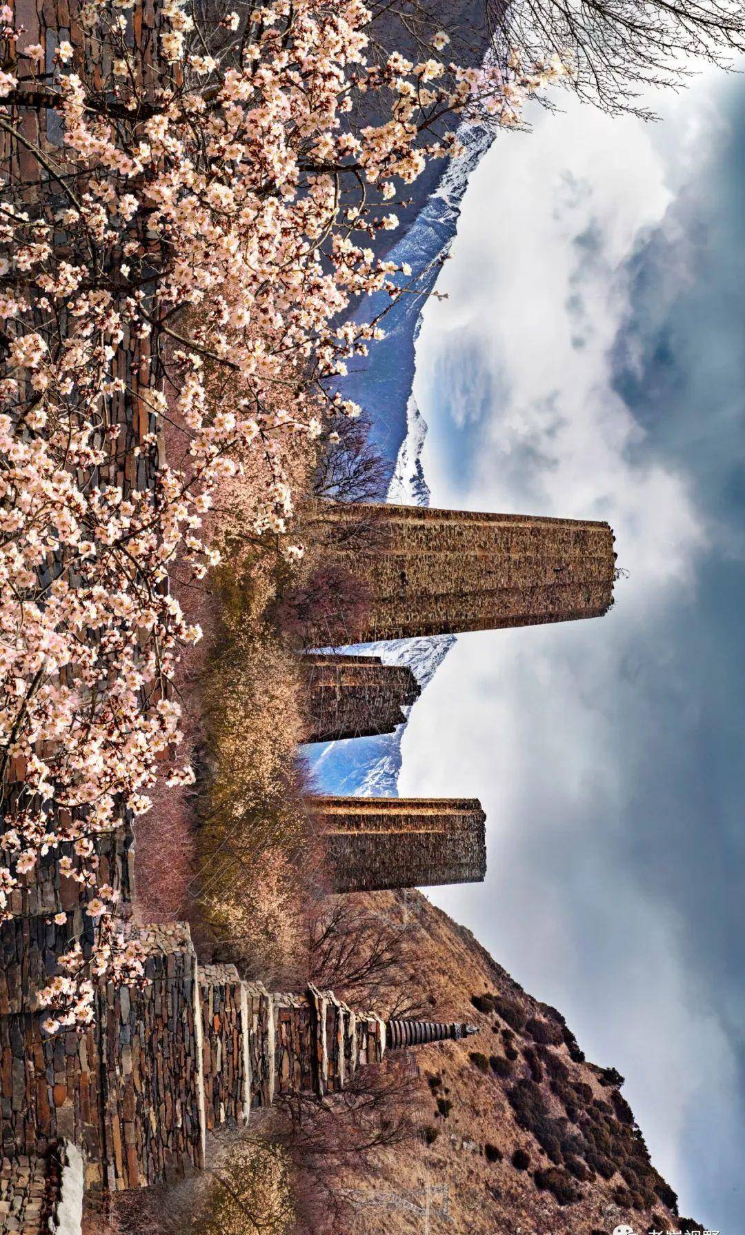 (请横屏。藏民院外门前的百年桃树。摄影@邯郸老崔)
