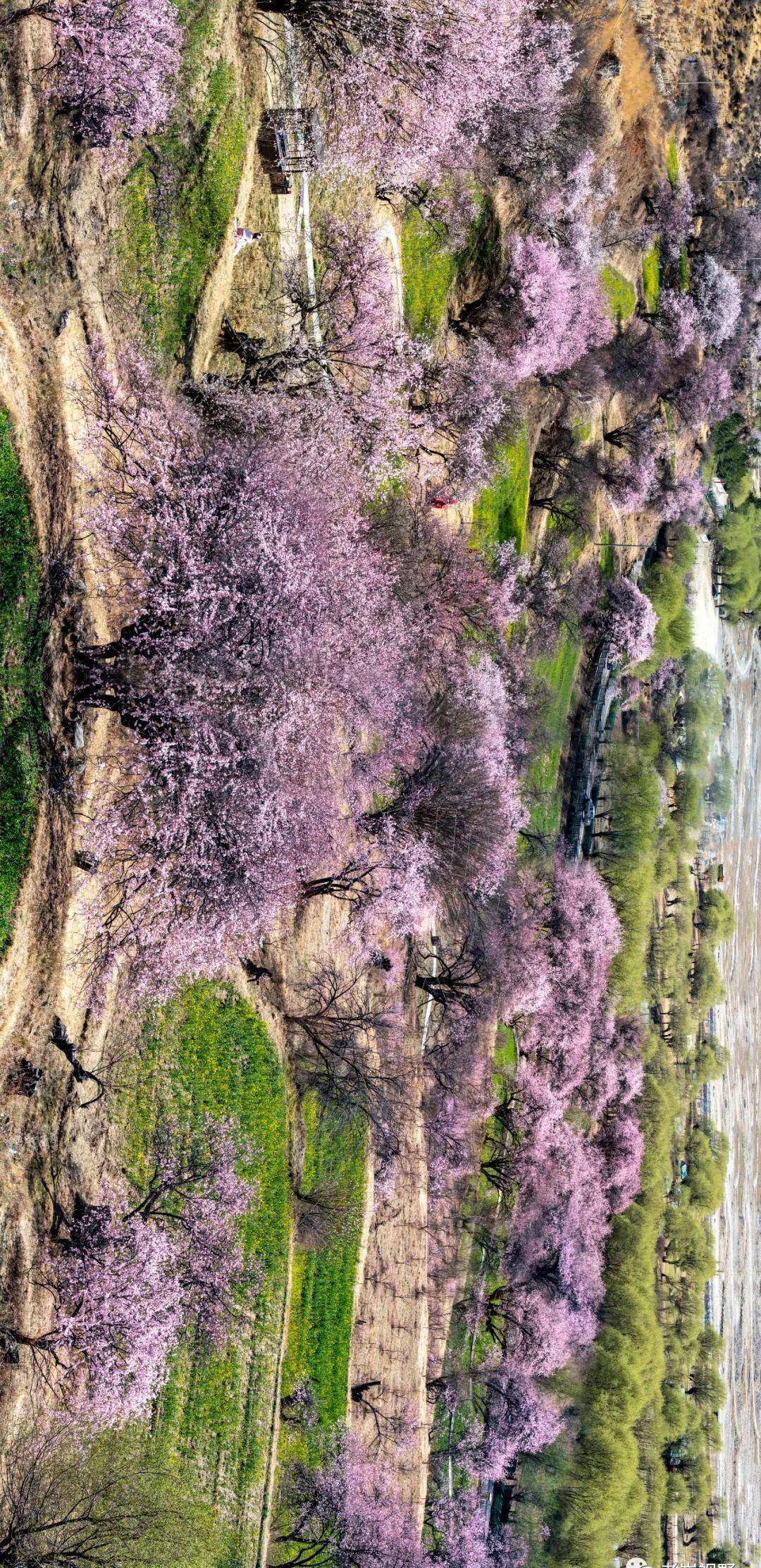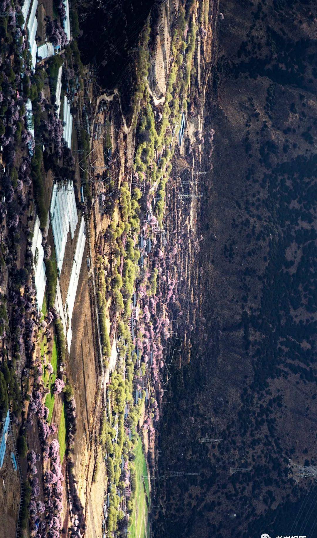 (请横屏。尼洋河畔桃花第一村,观景台上考到的嘎拉村桃花园。摄影@邯郸老崔)