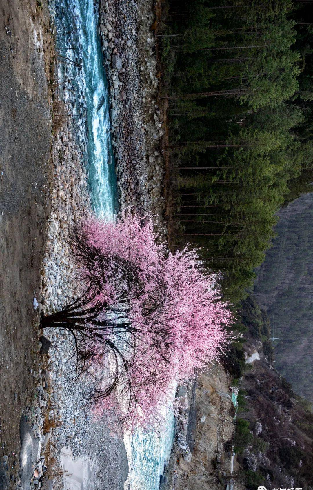 (请横屏。318国道旁,波密帕隆藏布河边,遇见了孤独而热烈的一树桃花。摄影@邯郸老崔)