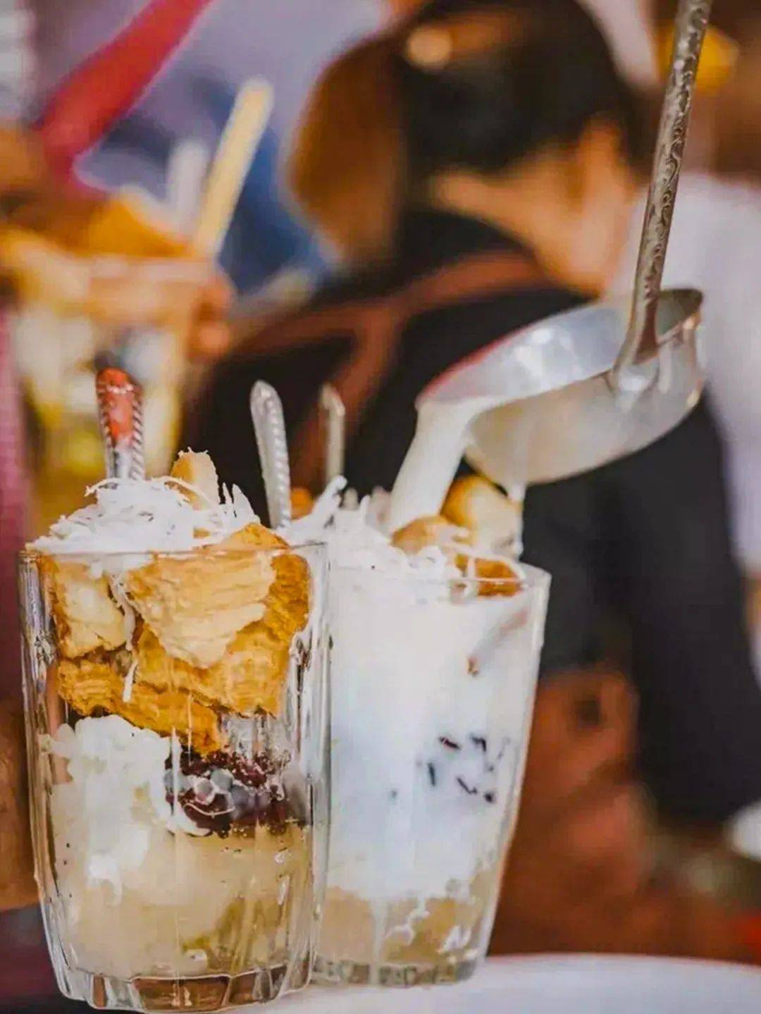来芒市一定要尝尝“泡鲁达”。这是一款隔壁缅甸流传过来的饮品,特别有东南亚风情。放入缅甸香脆面包块,酥脆香甜又混合着阵阵奶香的口感。