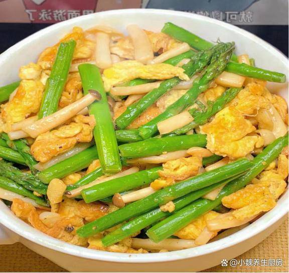 转眼进入到四月中旬之后,气温还是非常稳定,但是下周要迎来谷雨节气,虽然雨水很充沛,但是温度一直在上升,过了谷雨节气以后,就要迎来夏季了,这个时候要顺应季节,合理注重饮食搭配,不能每天吃大鱼大肉。随着温度不断上升,体内阳气上升,食补不振,经常容易上火,我们的饮食要稍微清淡一些,不能总是吃猪肉牛肉,可以给大家伙试试这道家常菜——芦笋菌菇炒鸡蛋,色泽十分好看,清爽又解腻,内行人经常吃多肉没有吃过这道芦笋菌菇炒鸡蛋,现在一起看一看此菜的具体做法吧。春天,猪肉牛肉靠边站,最该多吃这菜,低脂低卡,增强免疫胃口好。