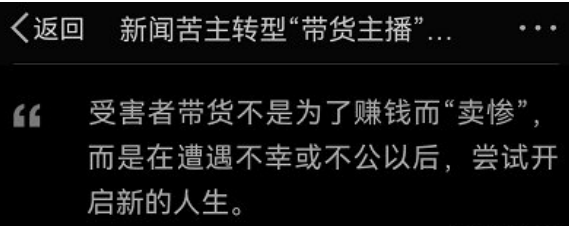 是啊,就像某官媒说的那样:“受害者带货不是为了赚钱而卖惨,而是在遭遇不幸或不公以后,尝试开启新的人生。”无论是章莹颖、江歌或是乔任梁的父母,他们直播带货的目的,除了赚钱维持生计,也是为了找到新的精神寄托,从而摆脱失子的痛苦,开始新的生活。