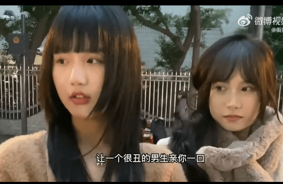 街头采访两个小美女,让一个很丑的男生亲你一口你愿意吗?美女毫不犹豫地拒绝了!我说要是很有钱的呢,美女说可以!