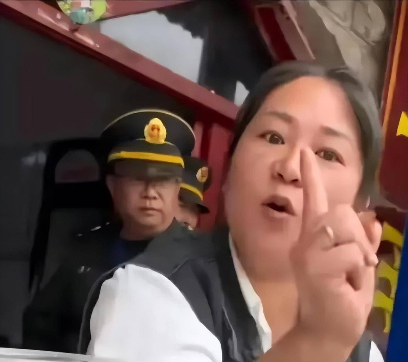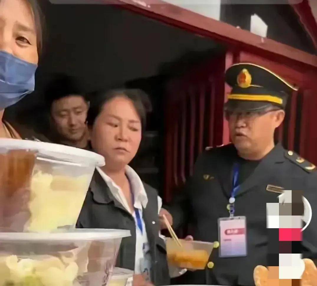 大家看看这副尊容!十足的泼妇!背后的两位城管形同虚设。不知道平时在这家店铺吃了多少凉皮才如此纵容商户。