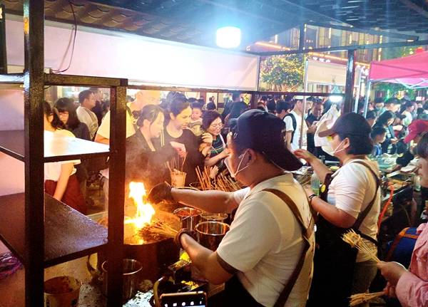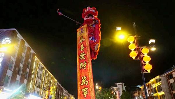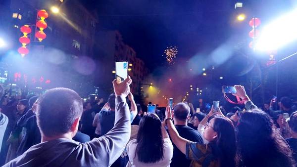 当晚8点06分,伴随着土家鼓舞的熟悉旋律,开街仪式揭开帷幕。一束束礼花弹燃着火焰冲向天际轰然炸开,灿烂绽放,响彻云霄,浩瀚夜空瞬间漫天华彩,为市民游客奉上了一场精妙绝伦的视觉盛宴;无人机组成的“张家界”“WLY”字样在索溪河畔流光溢彩的夜景中凌空起飞,幻化成璀璨星河;蝌蚪乐队现场演唱,舞狮、打溜子等非遗文化展演,让市民游客感受到只属于武陵源的独特浪漫。现场热闹非凡,人头攒动,一个个摊位灯火通明、招牌闪烁醒目,商家的吆喝声和市民游客的嬉笑声不绝于耳。