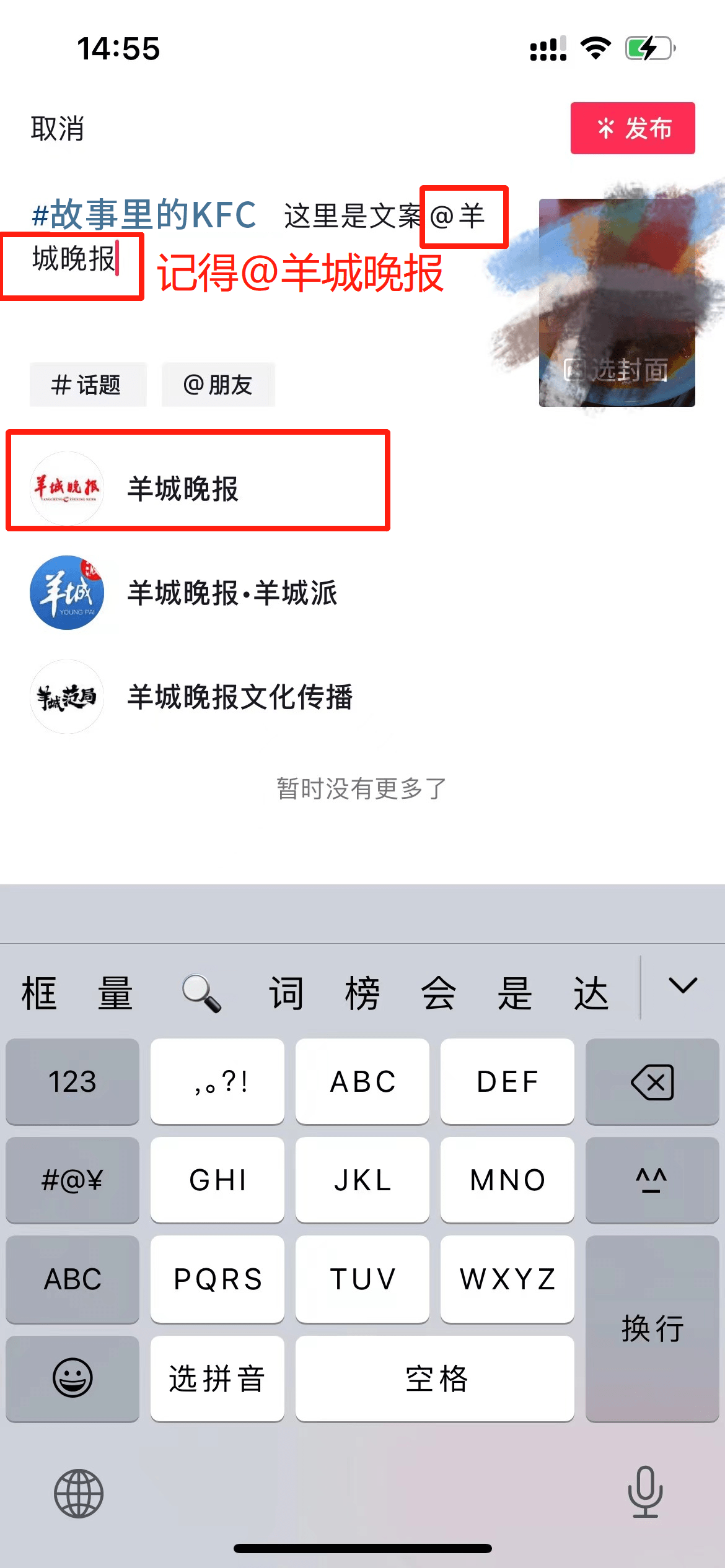 在抖音发布作品,在文字描述中加入#故事里的KFC话题,并@羊城晚报即可参加活动。