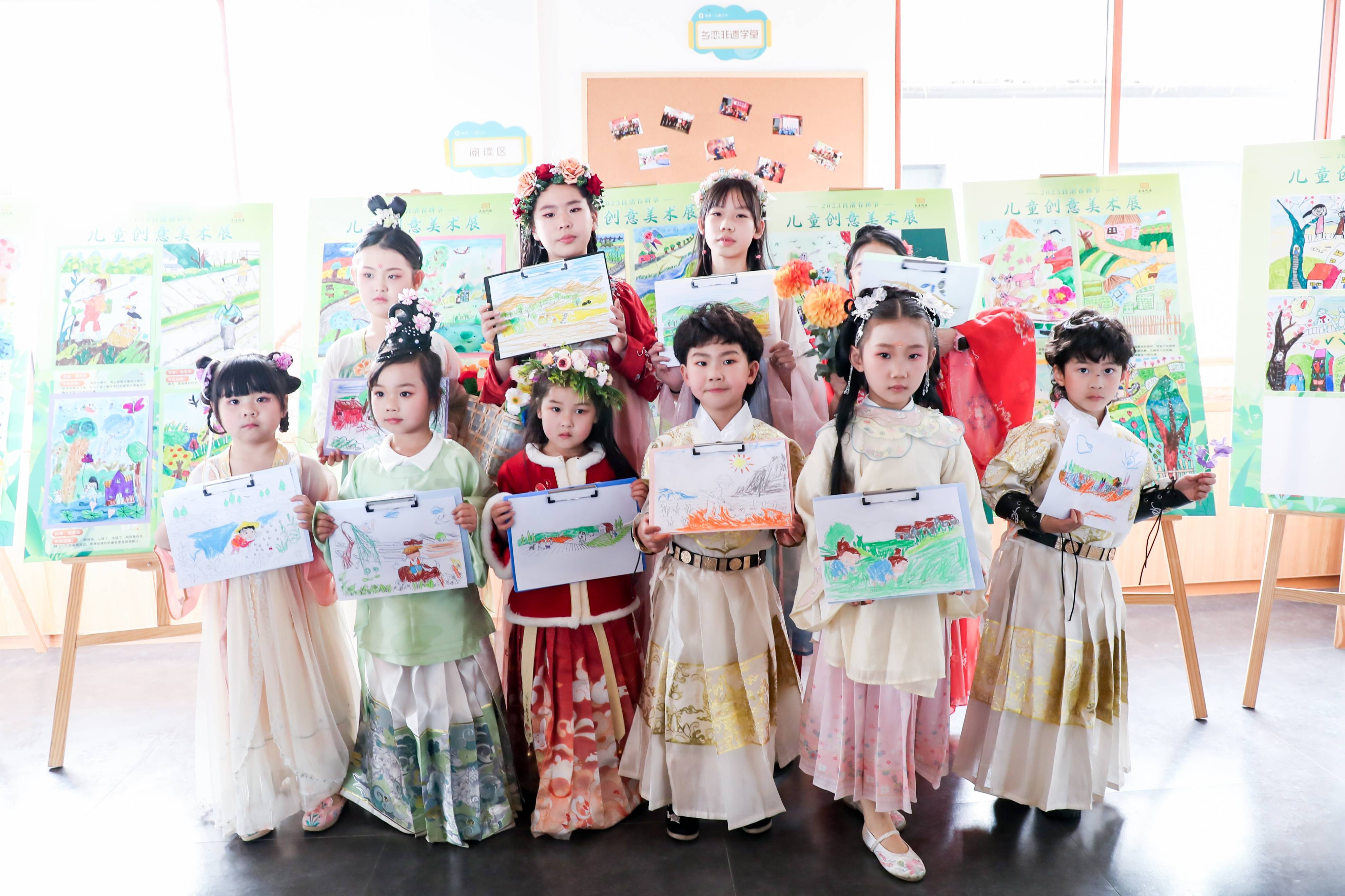 小朋友们用五彩斑斓的画笔,描绘出了各自眼中的良渚春色。