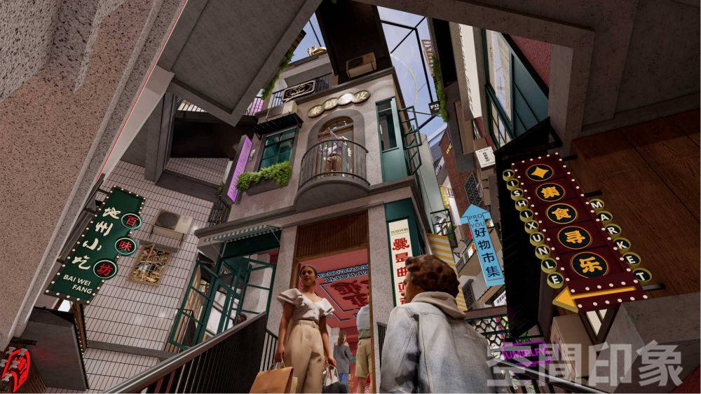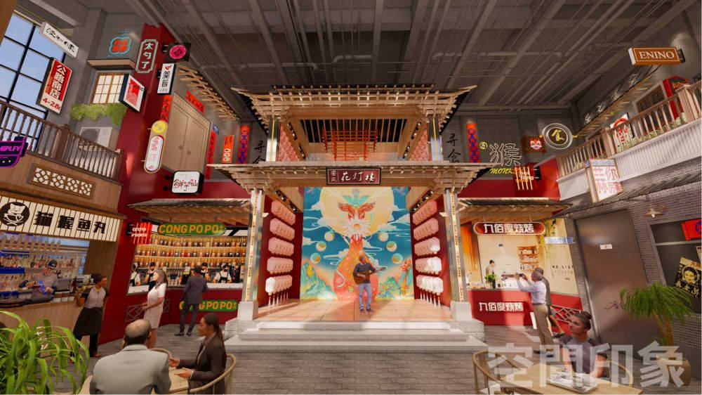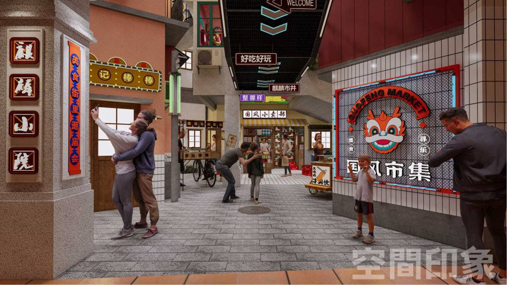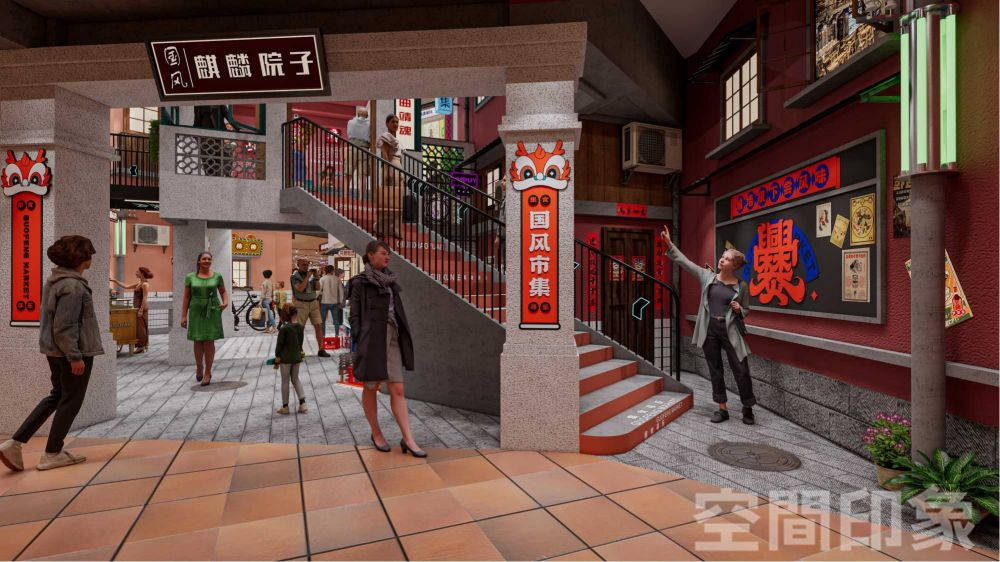 有的项目我们并没有刻意地做旧做脏,如同将尘封的老房子重新打扫,刷上新漆,置换家具,仿佛墙角测量身高留下的划痕还在,比如曲靖国风市集。这里原是解放前的京城戏院,我们保留着红墙青瓦、交错的楼梯、垂直式的布局,时不时听到从店铺里传来的吆喝声,抬头能看到儿时伸手便探到的邻居阳台,人们在楼道间来回穿梭,在市井小巷中勾起你的独家记忆。