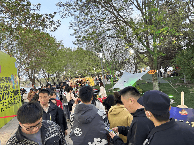 位于东营市中心的清风湖公园花红柳绿,春色满园。4月17日,大众日报记者在清风湖畔看到,公园西门处人流如织,熙熙攘攘,充满烟火气。