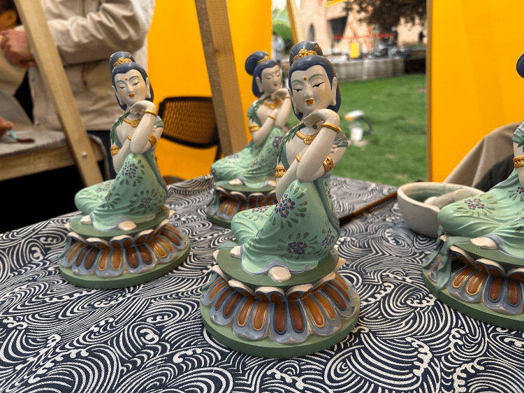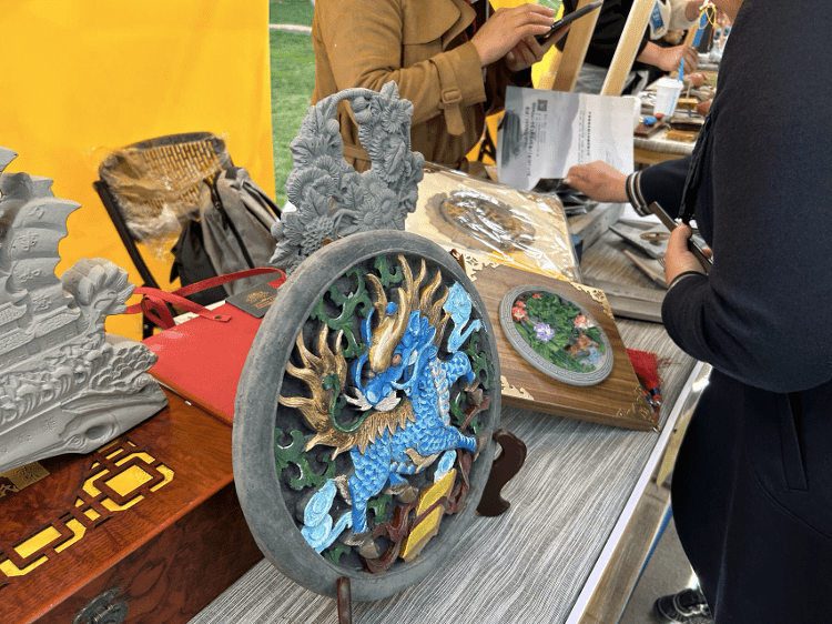 大集现场,除了有草编、布偶、德州窑红绿彩、淄博琉璃等山东沿黄地市的非遗项目,沿黄九省(区)非遗项目也精彩纷呈:来自青海的土族盘绣、甘肃酒泉的夜光杯雕、敦煌彩塑;宁夏的泥哇呜、砖雕;内蒙古的马头琴、乌拉特铜银器;陕西的凤翔泥塑、社火脸谱;山西的平遥推光漆器、高平绣活、潞绸织造技艺;河南浚县泥咕咕、钧瓷等国家级非物质文化遗产作品,在现场一一陈列,引来市民游客驻足。